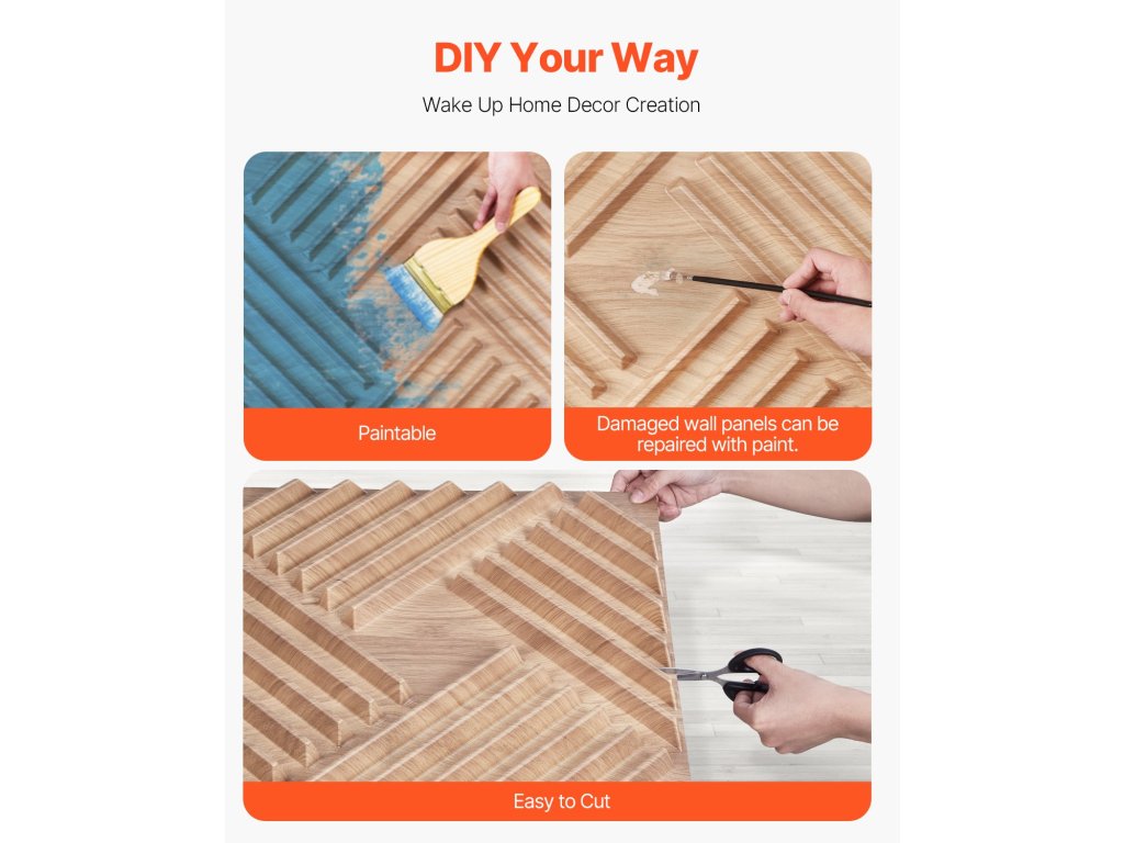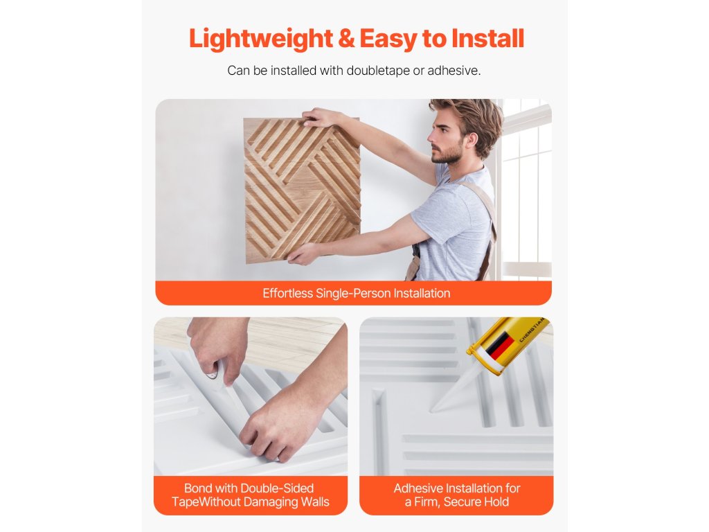 A sima, száraz, tiszta és biztonságos falak biztosításával hibátlan megjelenést érhet el. Régebbi falak esetén használjon vízbázisú tömítő alapozót a laza felületek stabilizálására. A panelek felszerelése után töltse ki a hézagokat töltőanyaggal a zökkenőmentes megjelenés elérése érdekében.