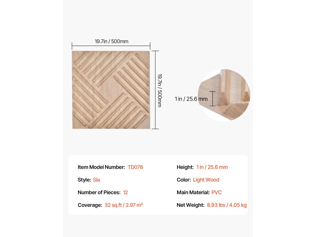 3D falpanelek 12 db PVC 19,7 × 19,7 hüvelyk (32 négyzetláb) világos fa