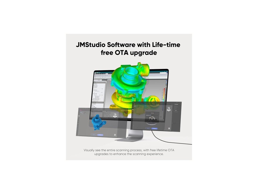A JMStudio szkennelőszoftver egyetlen zökkenőmentes folyamatba integrálja a szkennelést, a szerkesztést és az optimalizálást. A JMStudio kísérőszoftvere lehetővé teszi a teljes szkennelési folyamat vizuális megtekintését, míg az élethosszig tartó ingyenes OTA-frissítések fokozzák a szkennelési élményt.