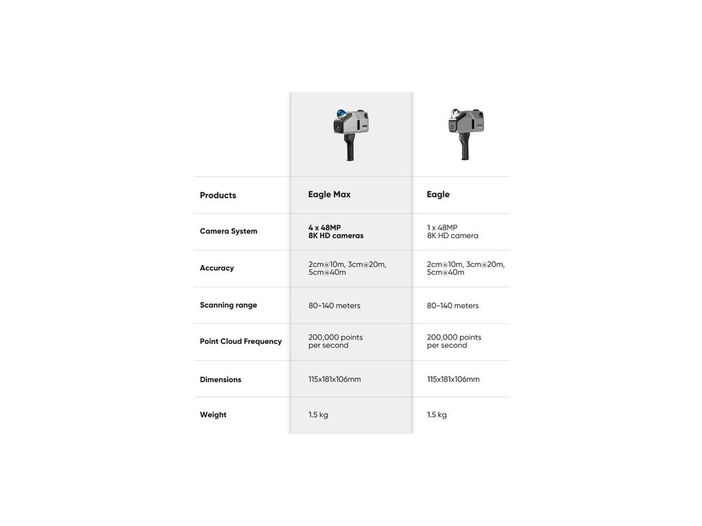 Az Eagle másodpercenként akár 200 000 pontot is összegyűjt, miközben még 20 km/h sebességnél is megőrzi az adatminőséget, és megfelel a különböző járművek dinamikus működésének igényeinek.