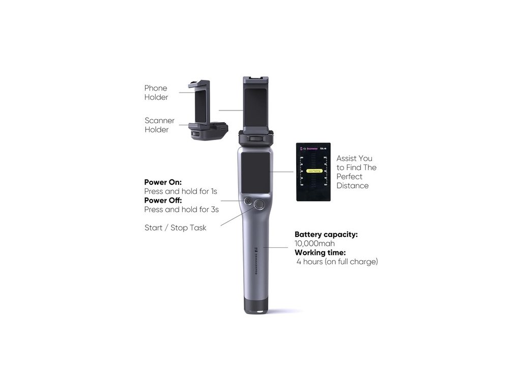 | Specifikáció | Kompatibilis 3D szkenner: Seal, Seal Lite, Moose, Moose Lite Akkumulátor: 6200 mAh (4 óra szkennelés) Kimenet: 20 V, 2 A, 45 W Bemenet: 30W/töltés USB-n keresztül számítógépes rendszerhez vagy hálózati adapterhez Csatlakoztathatóság: Android, iOS |