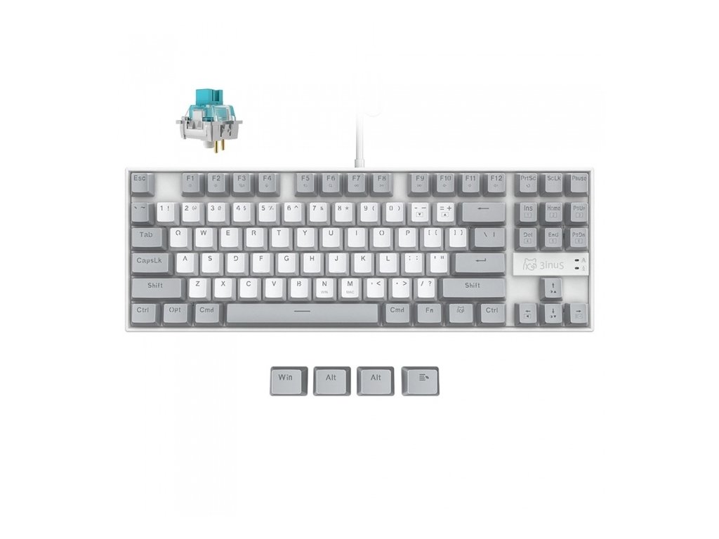 3inuS 87 billentyűs mechanikus billentyűzet 5 az 1-ben USB hubbal – kék kapcsolók, hot-swap, dupla USB-C kábel
