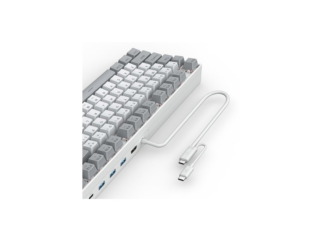 Jelentősen növelje termelékenységét az egyedülálló kialakítással, amely egy 5 portos USB hubot integrál a mechanikus billentyűzetbe. Lehetővé teszi, hogy mobiltelefonját és más eszközeit az irodában gépelés közben is táplálja, így ideális azok számára, akik több eszközzel dolgoznak.