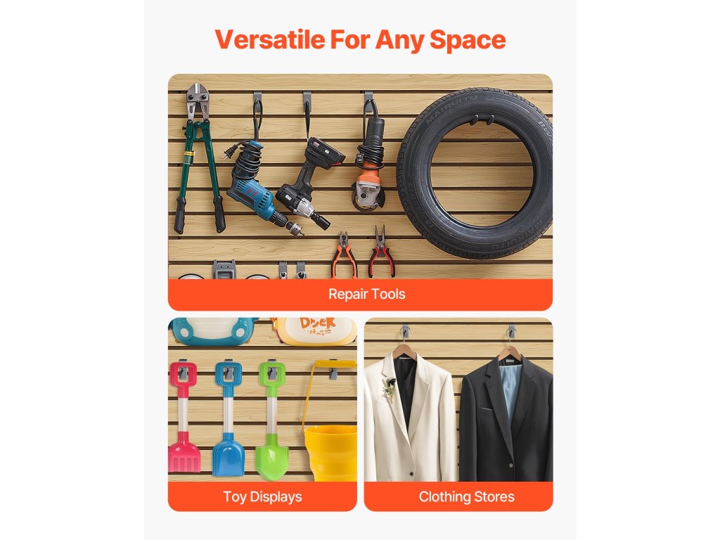 A lamellás falpanelek számos környezetben, például garázsokban, otthoni műhelyekben, kiskereskedelmi kirakatokban és más helyeken is alkalmazhatók. Erős teherbírást, nagy tartósságot és rugalmas tárolási lehetőségeket kínálnak a legkülönfélébb tárgyak számára, hogy megfeleljenek a különböző munkaterületek változatos igényeinek.