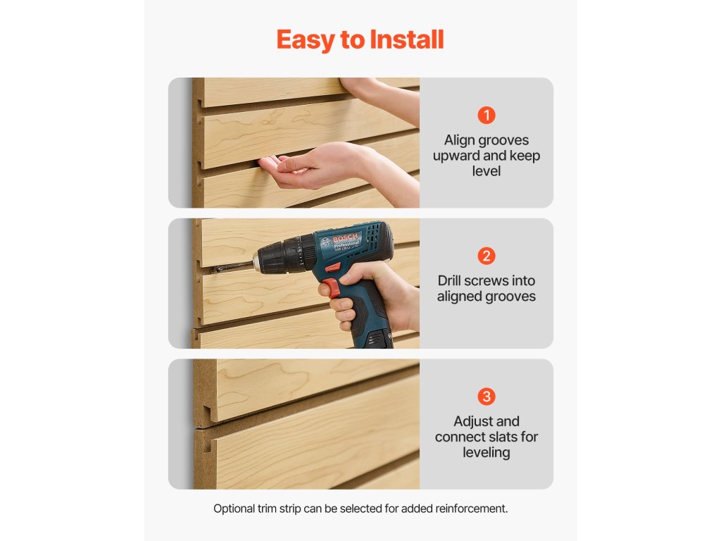 A lamellás falpanel réseinek szabványos kialakítása lehetővé teszi a stabilitást növelő erősítő csíkok egyszerű felszerelését. Az egyszerű telepítésnek és a teljes tartozékoknak köszönhetően gyorsan összeszerelheti saját maga.
