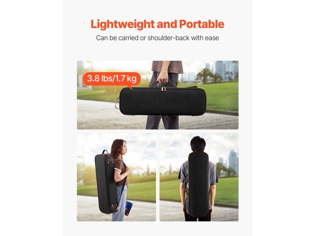 Ez a hegedűtáska minimalizálja a szállítás közbeni ütéseket. Több rekesszel rendelkezik, amelyekben bőséges hely van a vonótartó, a karbantartási kellékek, a lant szerszámai, a kottapapír és sok minden más számára. Könnyű kialakításának köszönhetően kényelmesen hordozható a vállán vagy a kezében, bárhová is megy.