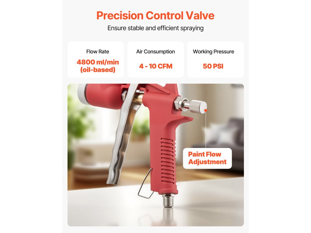 Ez a légtextúrás festékszóró pisztoly akár 4800 ml/perc (olajbázisú) festékáramlási sebességet is biztosít, állítható áramlásszabályozással, így könnyedén elérheti a személyre szabott szórási hatást.