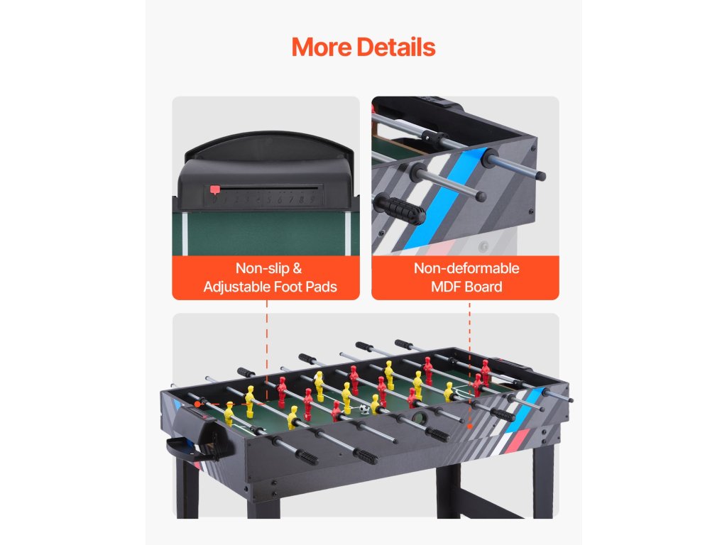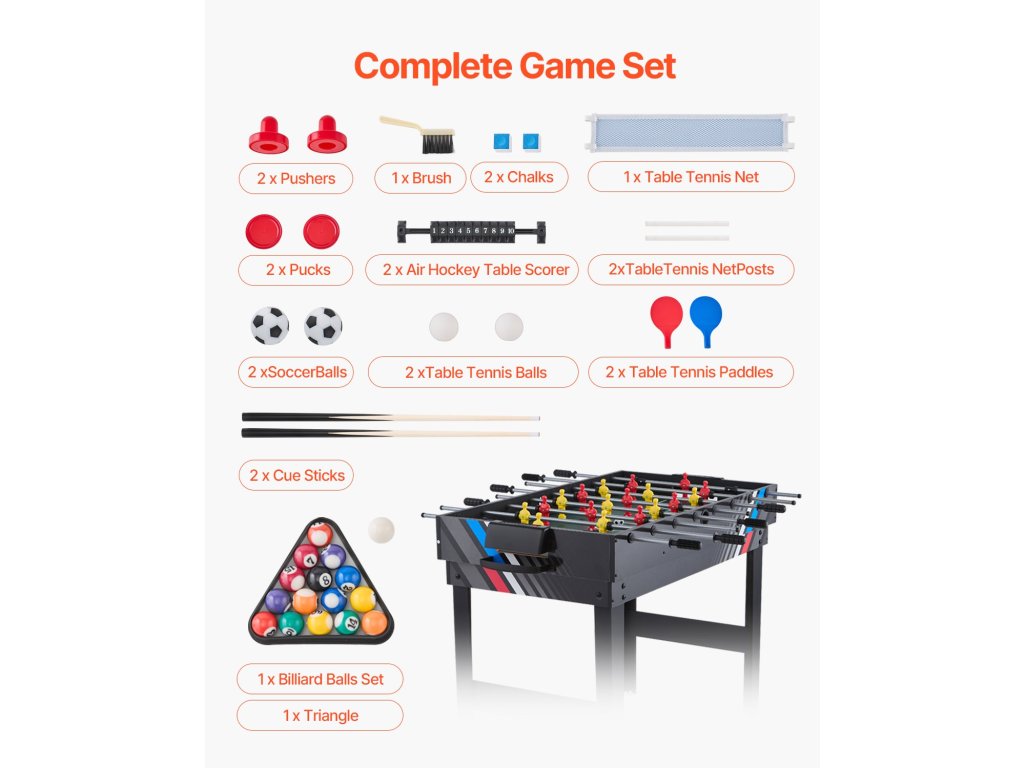 Ez a 4 az 1-ben multifunkciós játékasztal egyetlen megfizethető játékasztalban egyesíti a léghokit, a csocsót, a biliárdot és az asztali teniszt, és órákon át tartó családi szórakozást biztosít. Kompakt kialakítása (48 × 27,2 × 32,3 hüvelyk / 122 × 69 × 82 cm) és egymásra rakható szerkezete könnyedén helyet takarít meg.