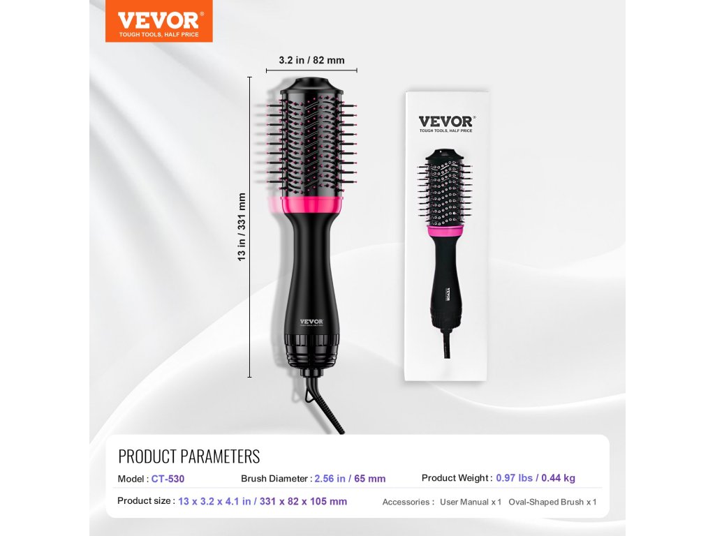 VEVOR 4 az 1-ben hajszárító kefe: a hajformázó varázsló! Könnyedén megvalósítja a szárítást, göndörítést, egyenesítést és volumennövelést, hogy minden frizurakészítési igényt kielégítsen. Fejlett kerámia bevonattal és 30 W+ negatív ionokkal rendelkezik, így hatékonyan csökkenti a hőkárosodást, miközben a nedvességet is magába zárja a simább, egészségesebb haj érdekében.