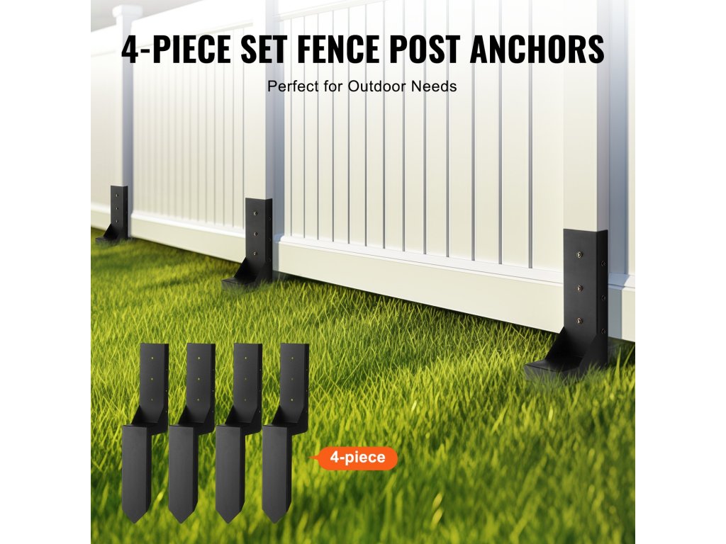4 darabos kerítésoszlop-horgony készlet, belső Ø 3,5×3,5 hüvelyk, acél