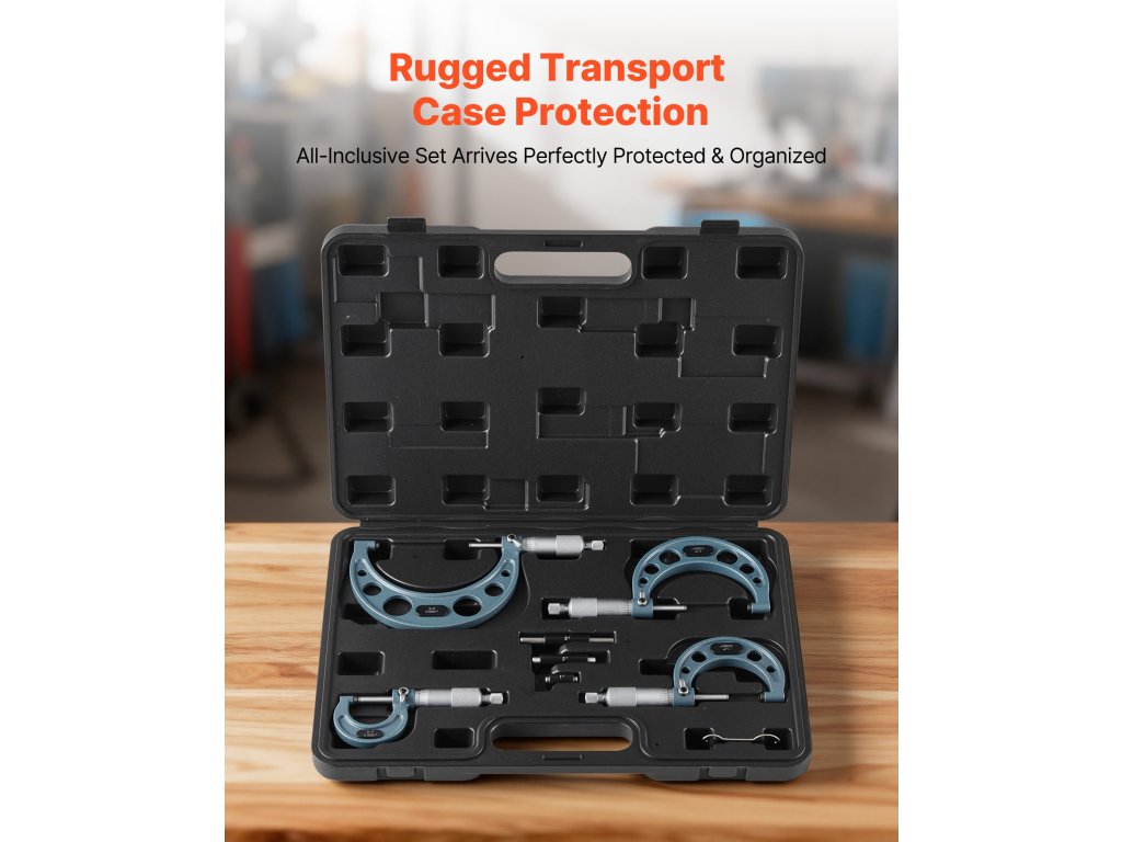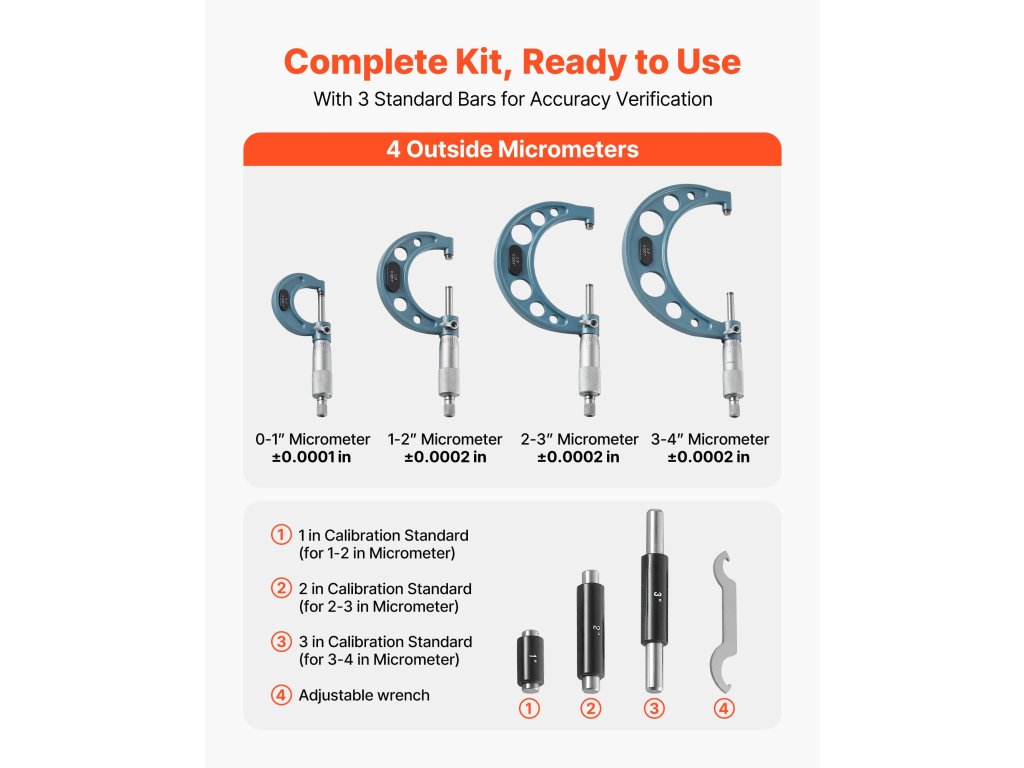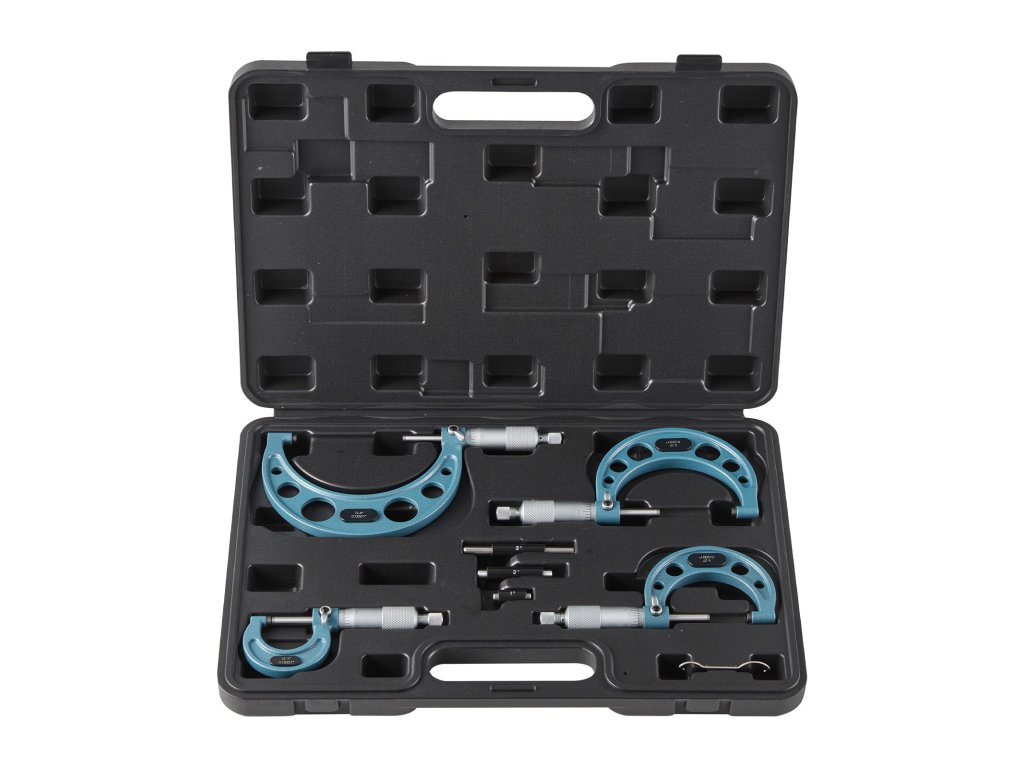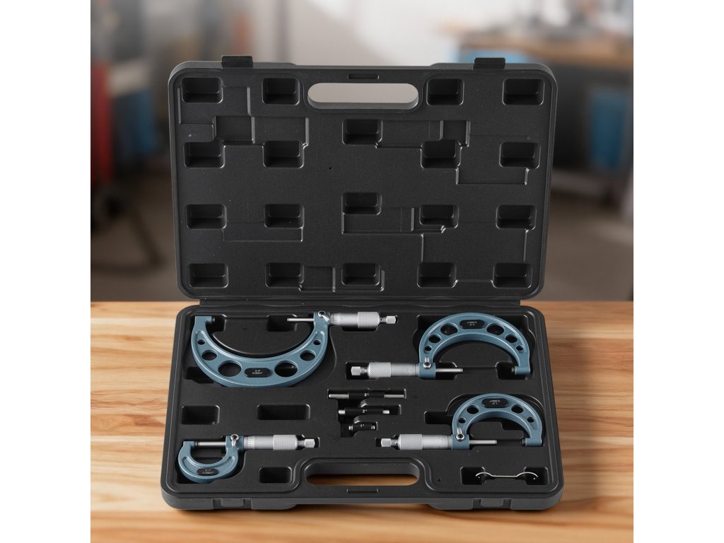 4 darabos külső mikrométer készlet 0–1/1–2/2–3/3–4 hüvelyk fémhez, tokkal