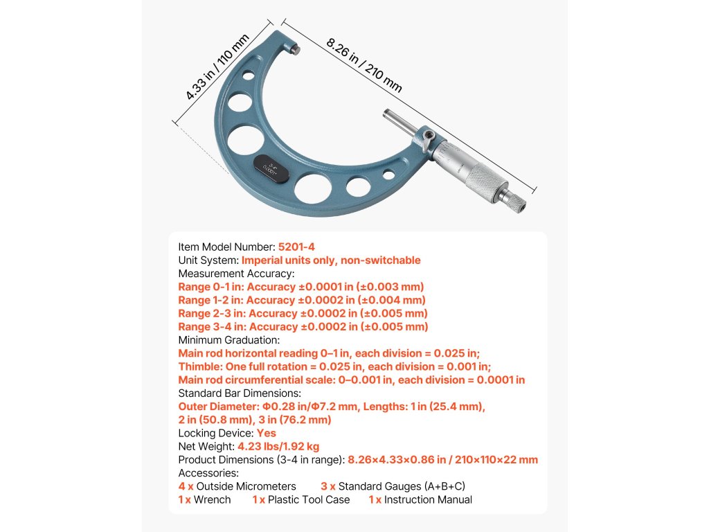 | Tartomány 3-4 in | Pontosság ±0,0002 inch |