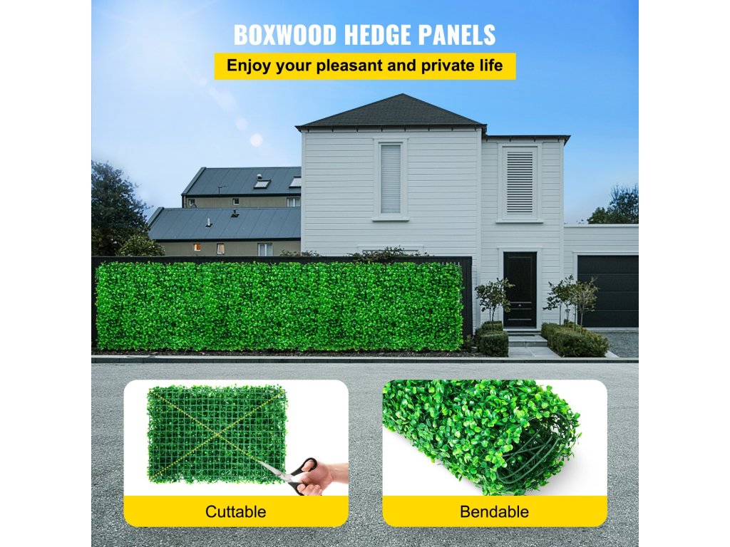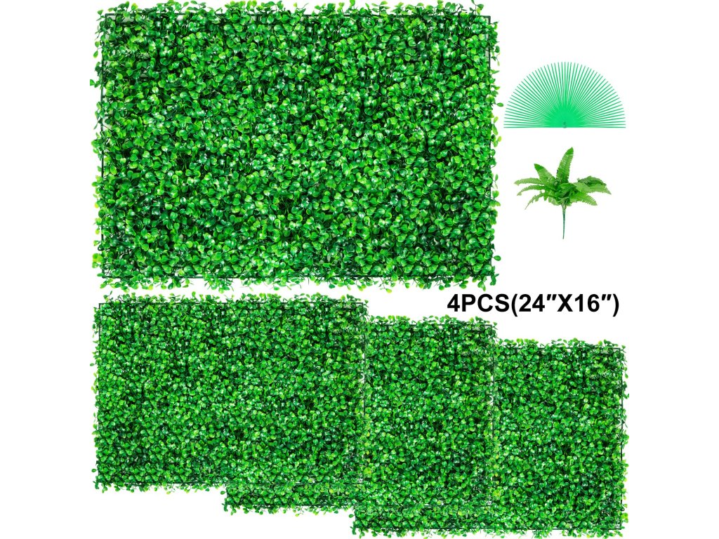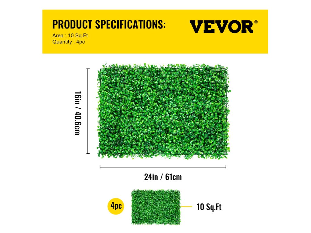 Méret: 24'' x 16''. Mesterséges sövénynövényünk 100% környezetbarát polietilénből készült, amely garantálja a hosszú élettartamot fakulás nélkül.