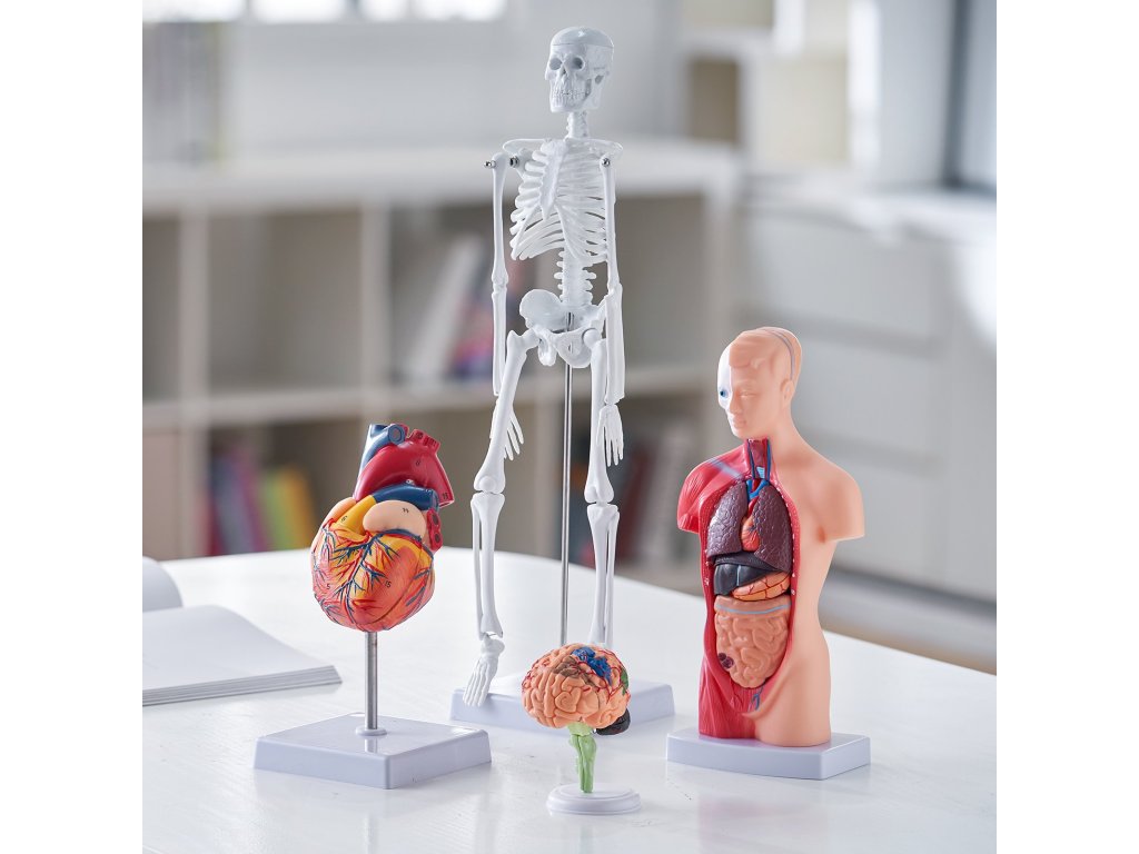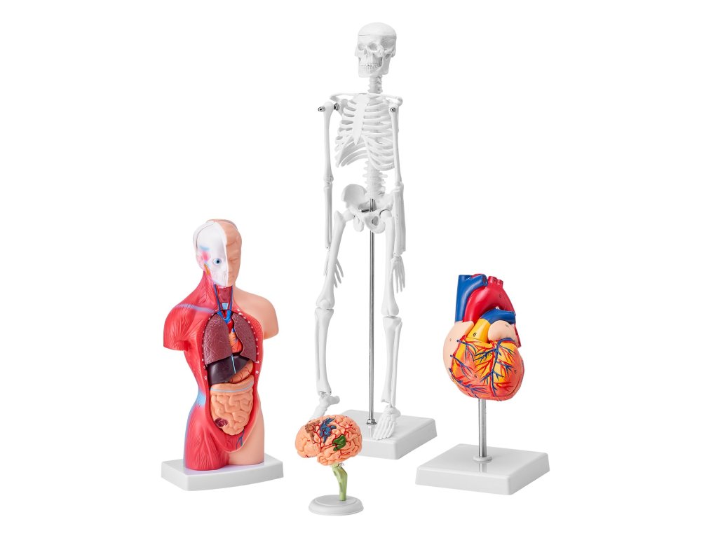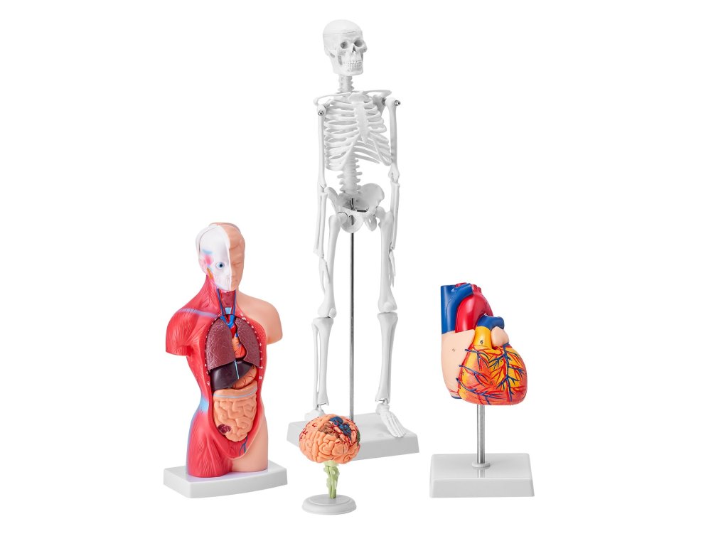 4 db anatómiai háromdimenziós modell: agy, emberi törzs, szív, csontváz