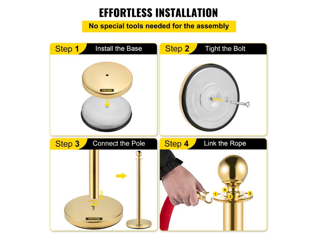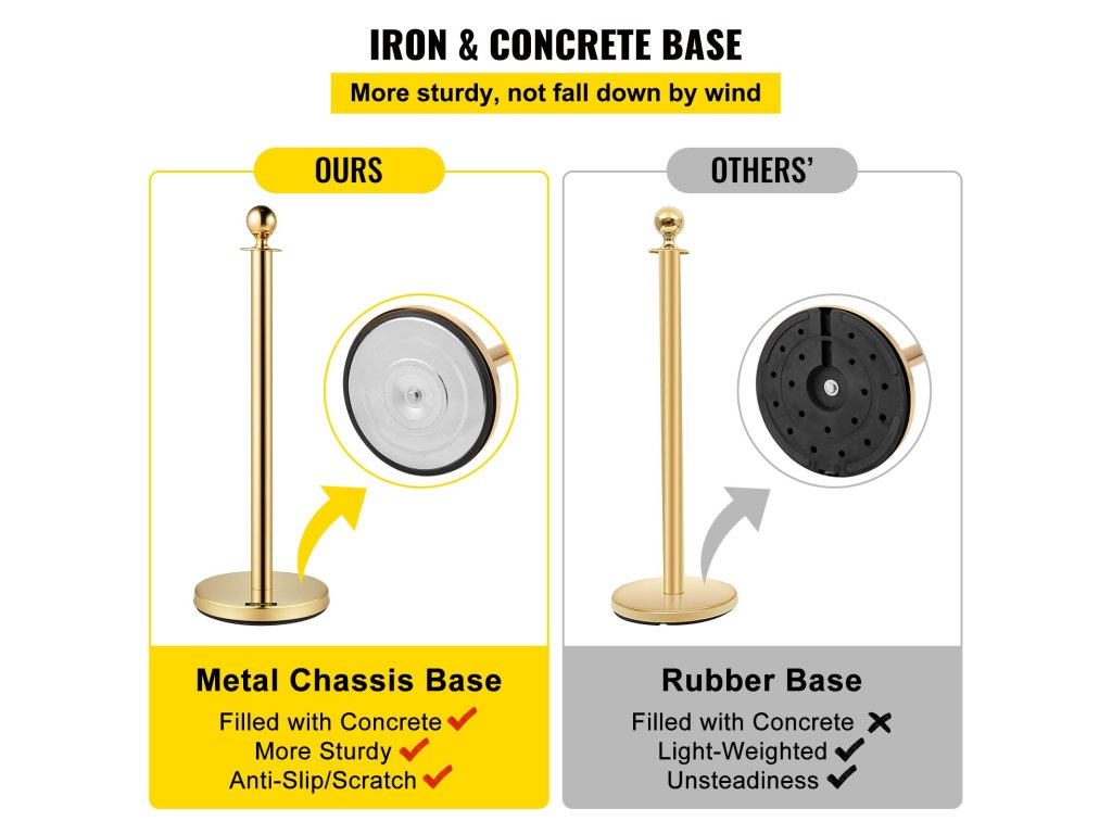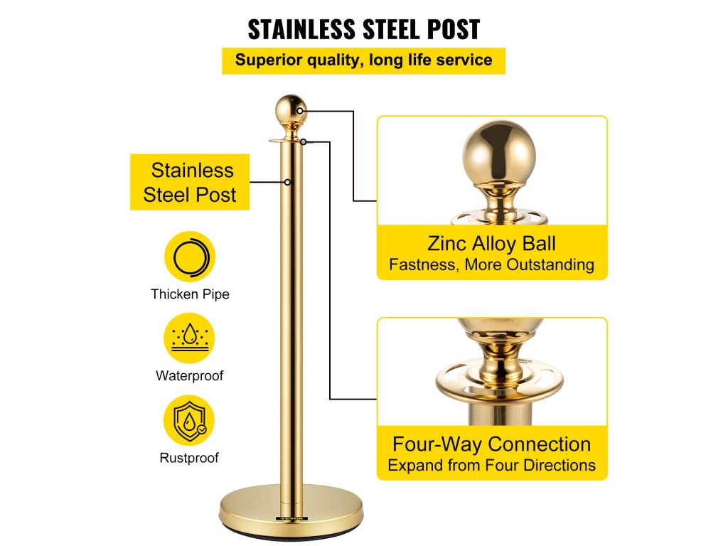Az aranyoszlopok 201 rozsdamentes acélból és cinkötvözetből készülnek, vízállóak és korrózióállóak, magas hőmérsékletet tartanak fenn. Ez a tartós anyag hosszú élettartamot biztosít az állványnak.