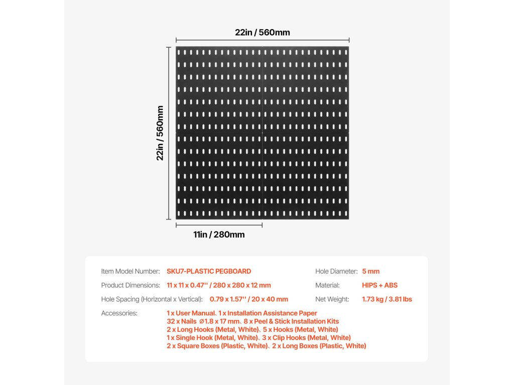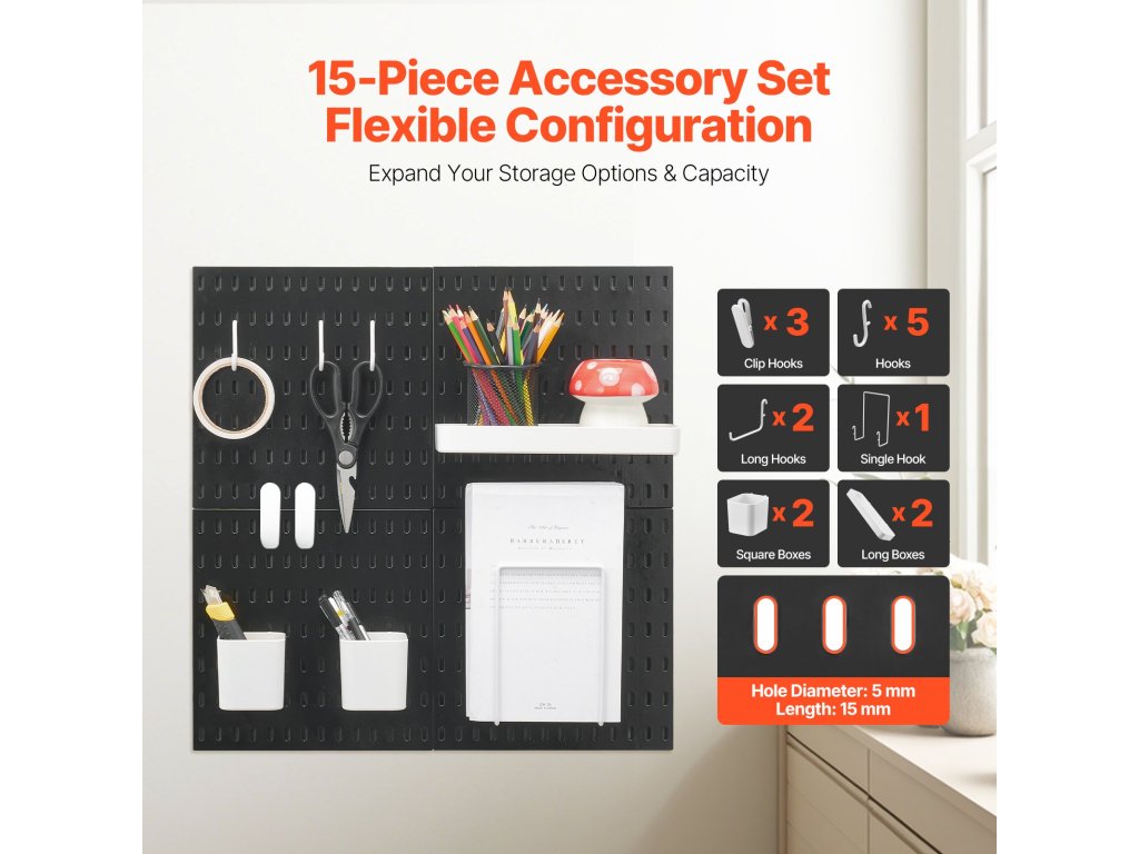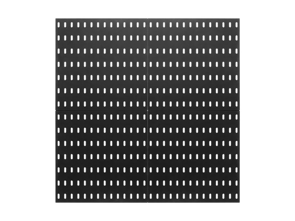 4 db lyukacsos fali panel, 28 cm × 28 cm, fekete, fali kiegészítőkkel