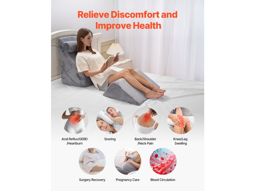 Ez az ékpárna ideális alváshoz, olvasáshoz, tévénézéshez vagy laptop használatához, kényelmes alátámasztást biztosít és enyhíti a hátra nehezedő nyomást.