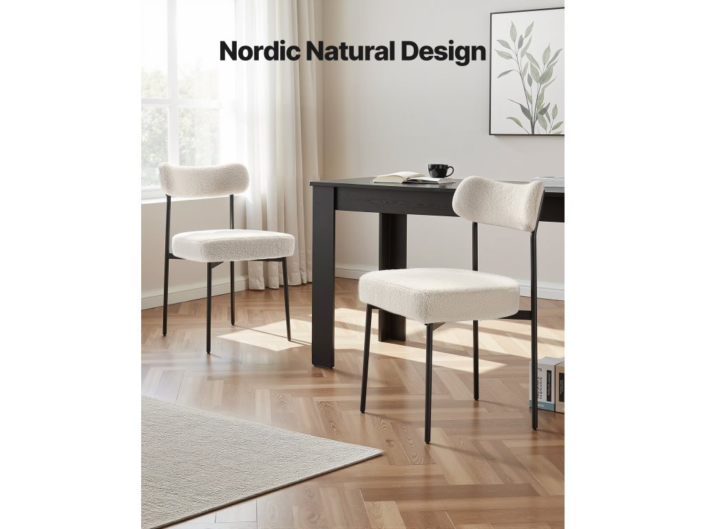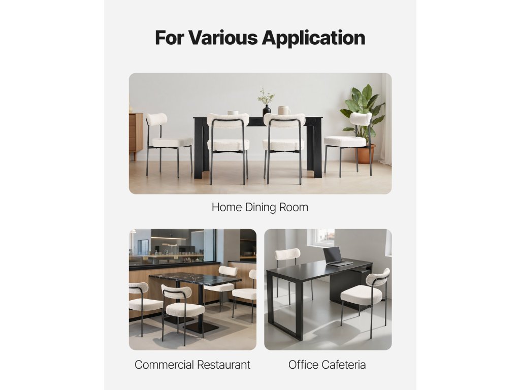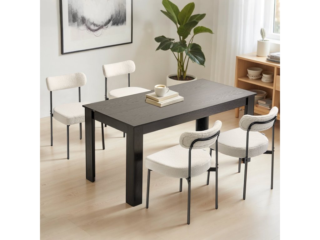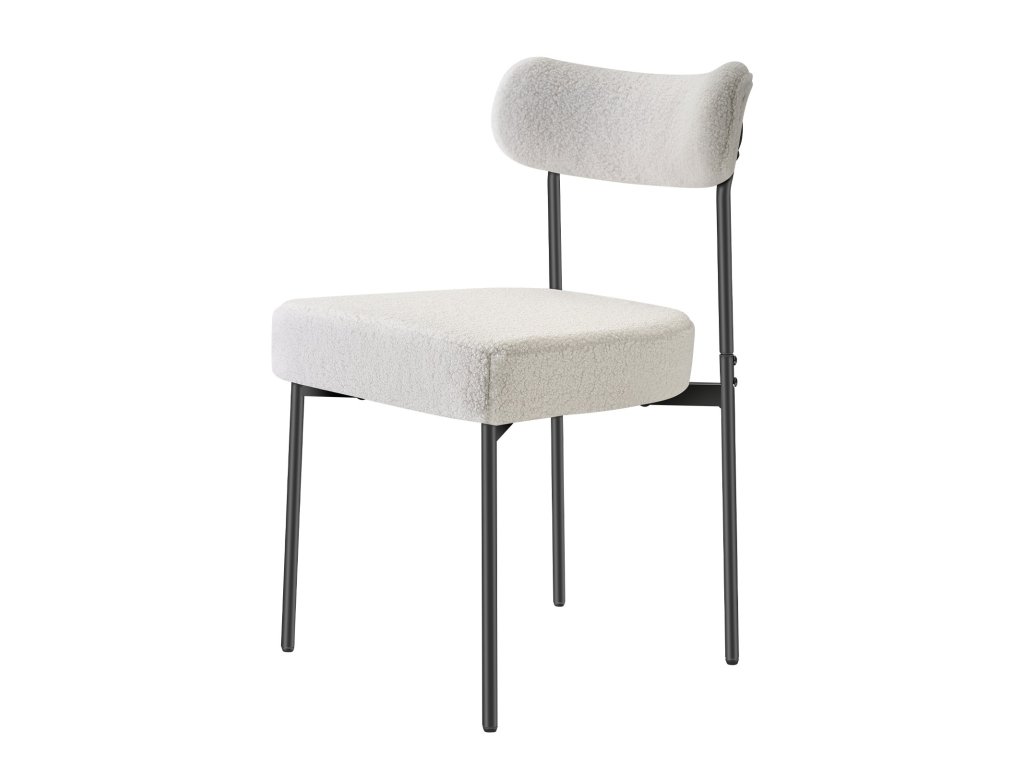 4 db-os étkezőszék, kárpitozott fehér boucle szövettel, fekete fém lábakkal