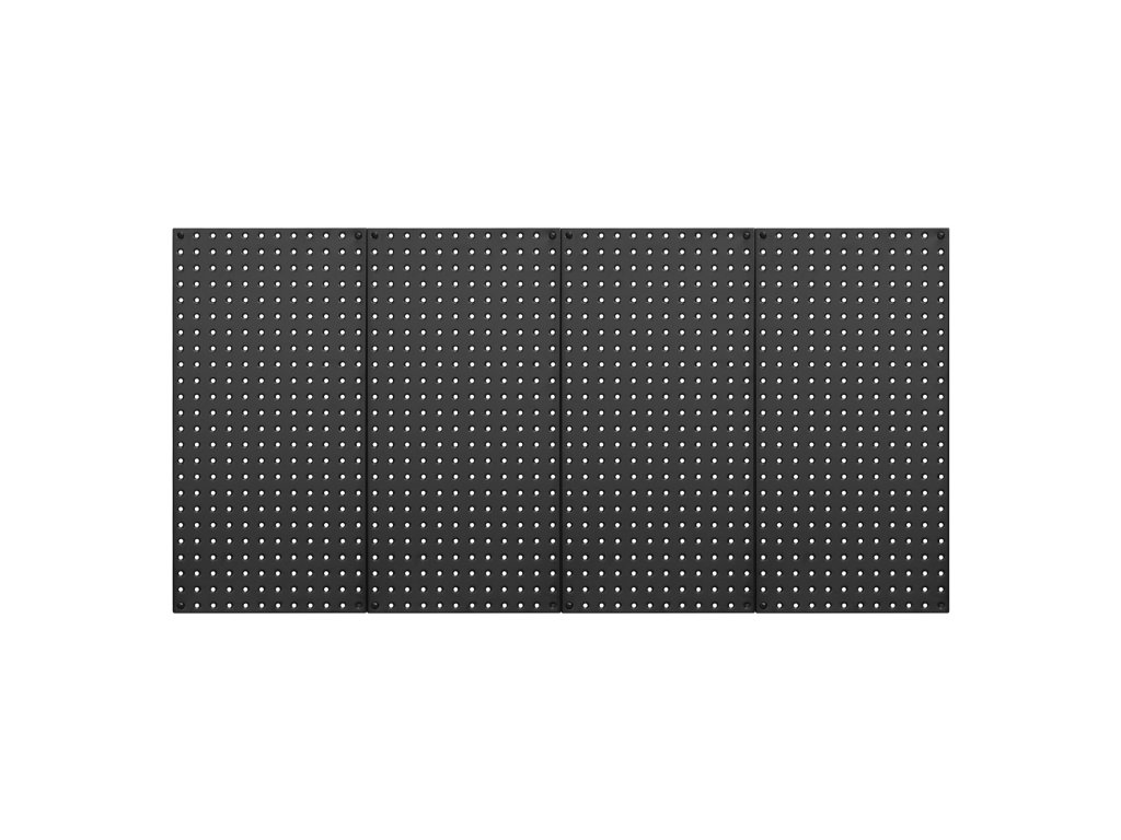4 db-os fém perforált fali panel, 61 cm × 30 cm, fekete, kiegészítőkkel
