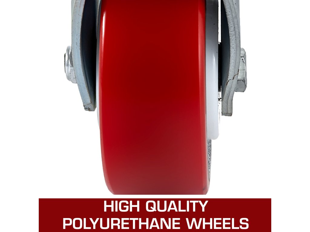 Minden egyes kerék akár 1000 fontot, négy kerék akár 4000 fontot is elbír. Prémium minőségű dupla mélyhornyú golyóscsapágyakkal felszerelt, amelyek könnyű tologatást biztosítanak, és a legkeményebb munkákhoz is megőrzik az erősséget.