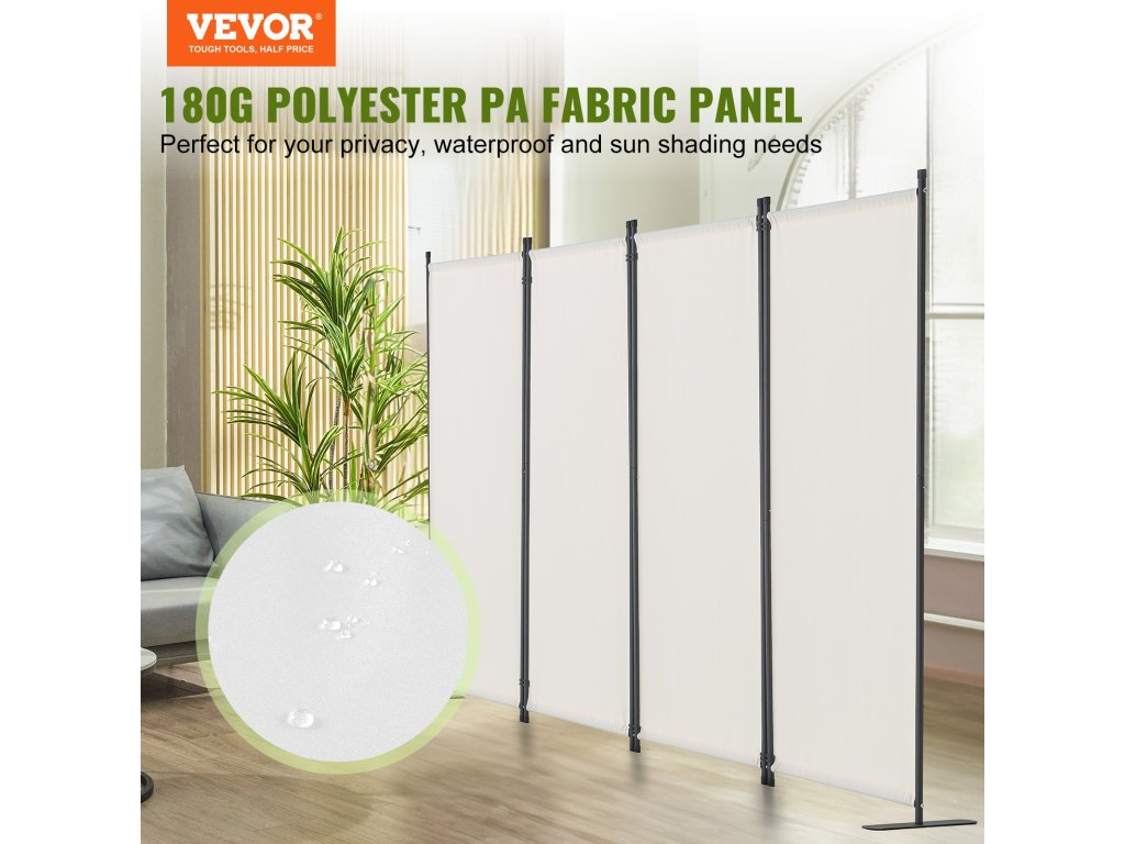 4 paneles paraván, textil, szabadon álló, fehér