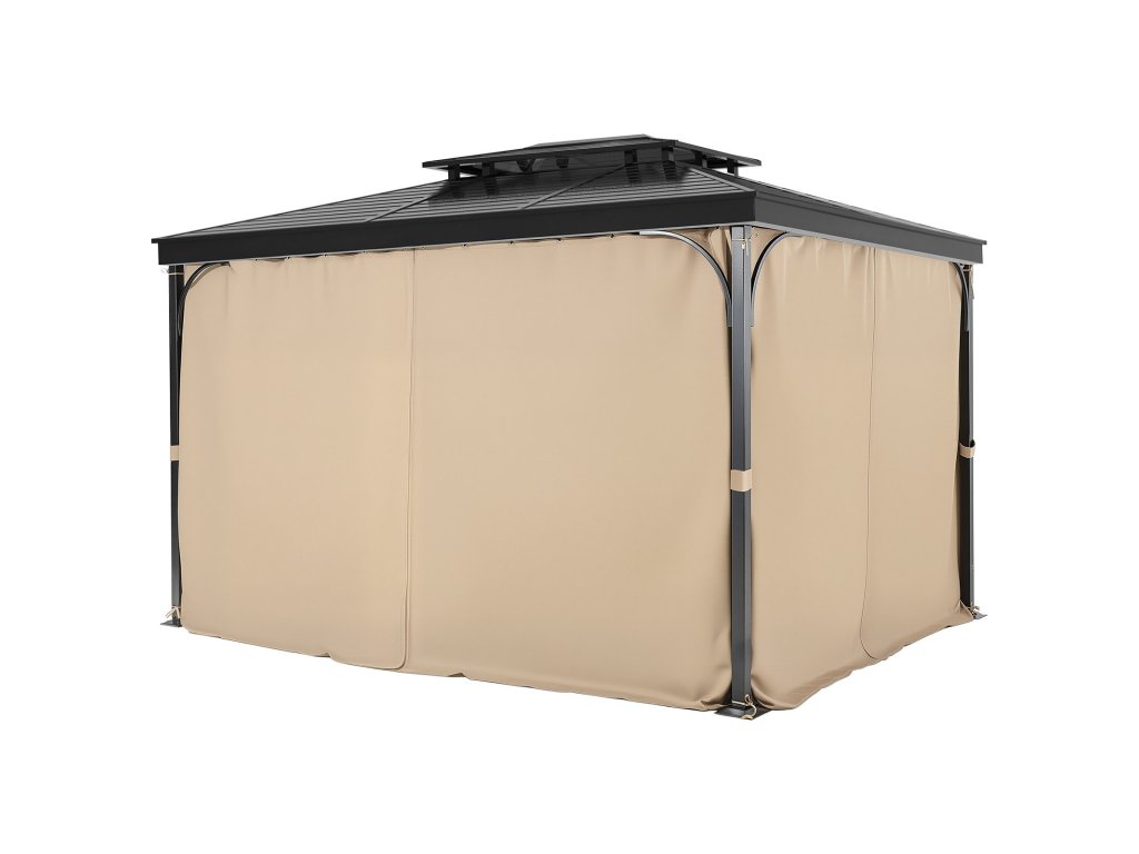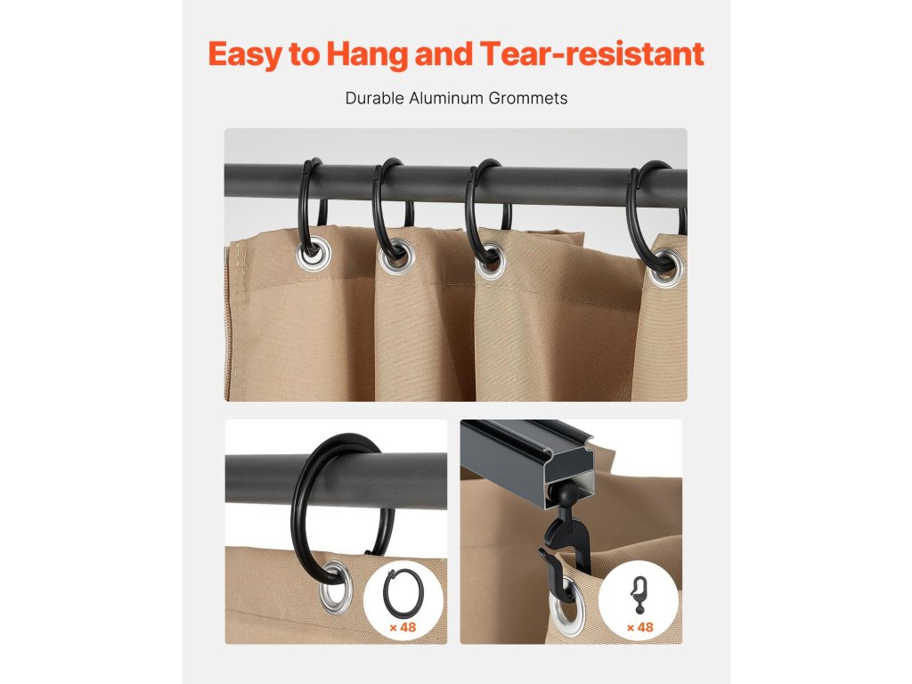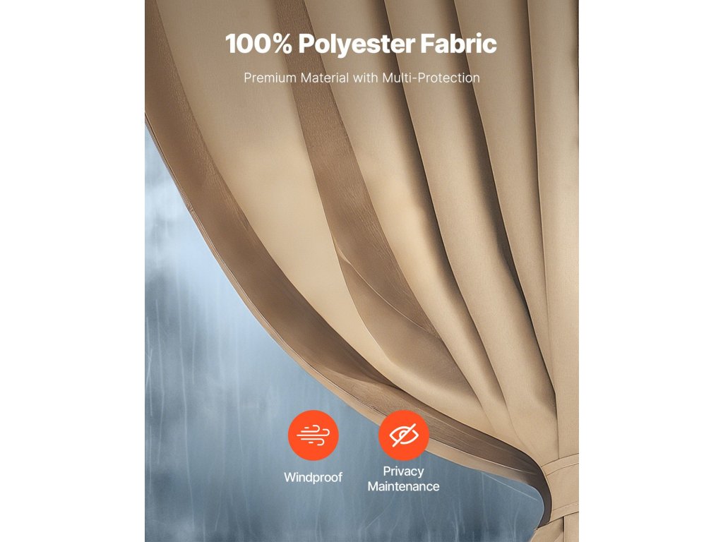 Ezt a pavilonfüggönyt 10' x 10' x 6,7' méretű pavilonokhoz tervezték, és 160 g/m2 vízálló poliészterből készült. A kétoldalas cipzár lehetővé teszi a könnyű beállítást, míg az alumínium tömítések és a háromrészes lekötözős szerkezet gyors felszerelést és stabil tartást biztosít, megőrizve a magánéletét.