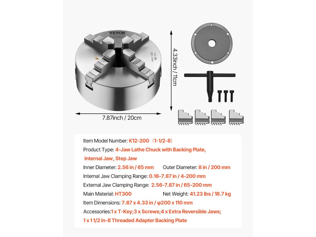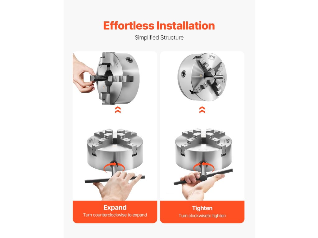 Az alátétlemezzel ellátott esztergaprésszel gyorsabb és stabilabb gépcsatlakozást tesz lehetővé. Prémium HT300 öntöttvasból készült, a kivételes tartósság érdekében a pofák keménysége ≥53 HRC. Az önközpontosító kialakítás nagy pontosságú rögzítést biztosít 0,16 és 7,87 hüvelyk között, 2,56-os belső átmérővel és 8 hüvelykes külső átmérővel.