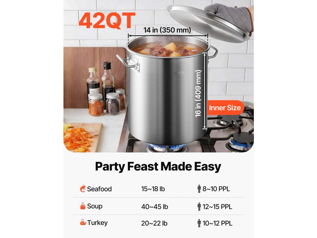 A 42 QT-es szószfazék egyszerre jelentős mennyiségű hozzávalót képes megfőzni, így alkalmas kereskedelmi konyhai használatra és családi összejövetelekre is! Ideális pároláshoz, levesek készítéséhez, pároláshoz és sütéshez!