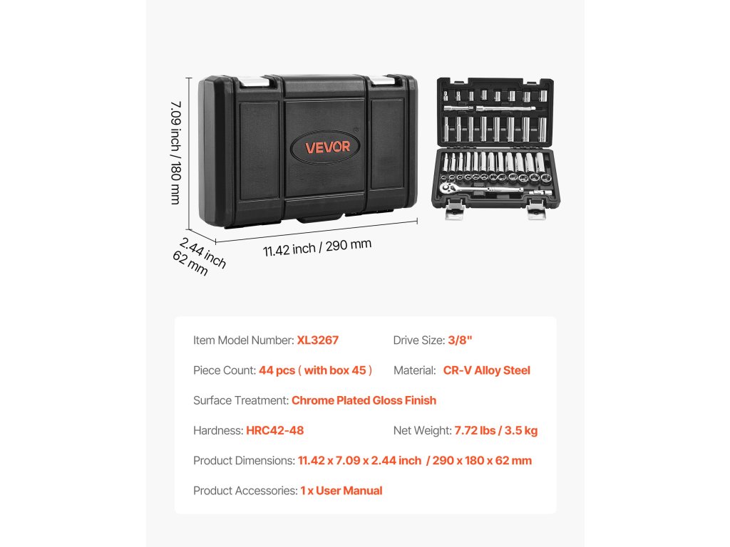 44 darabos dugókulcs készlet, 9,5 mm, SAE/metrikus, CR-V
