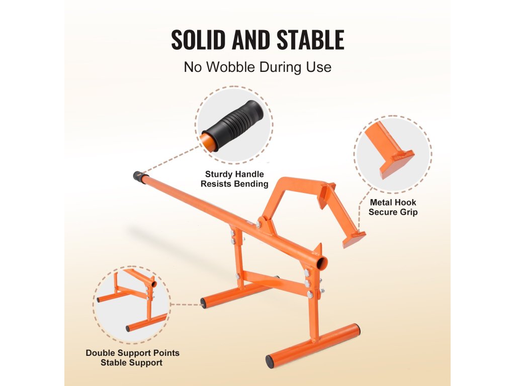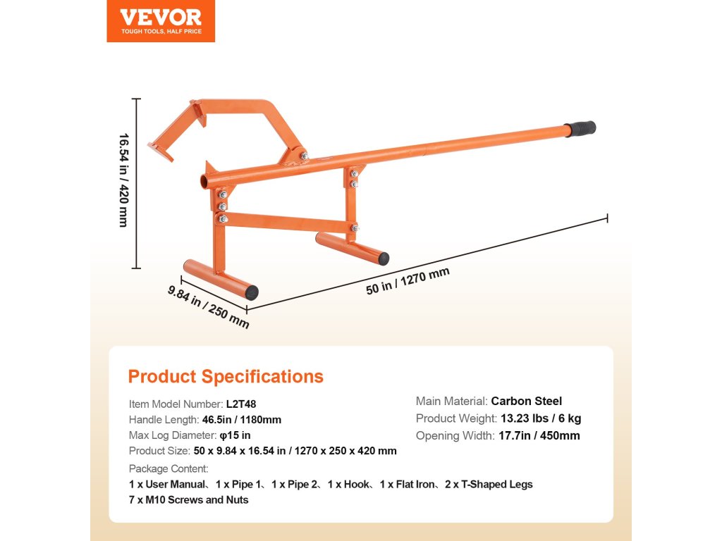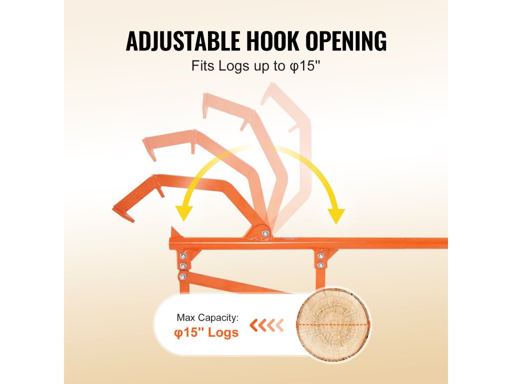 A 46,5" hosszú nyéllel rendelkező rönkemelő a kar elvét használja, hogy könnyedén felemelje a rönköket a vágáshoz. A rönkemelő vaskampó furata állítható, és legfeljebb φ15" kerek rönkökhöz használható. Használhatja láncfűrésszel, fa hasítóval a fa vágásához.