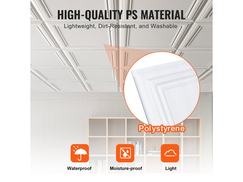 Ez a mennyezeti csempe kiváló minőségű, vízálló anyagokból készült a hosszú élettartam érdekében. Könnyen felszerelhető, és könnyedén vonzó mennyezetet hoz létre. Festési lehetőség a személyes igényeihez igazítható, így könnyedén kialakíthat egy egyedi teret otthonában!