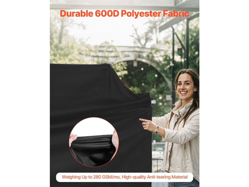 3 réteg kiváló minőségű anyagból készült: PVC réteg, poliészter szálas réteg és vízálló réteg. Ez a grillhuzat vízállóságot biztosít. A négy sarok megerősített, hogy ellenálljon a kopásnak. A varrás szorosan szőtt, hogy növelje a vízállóságot.