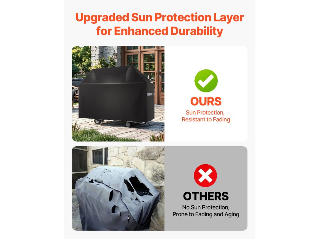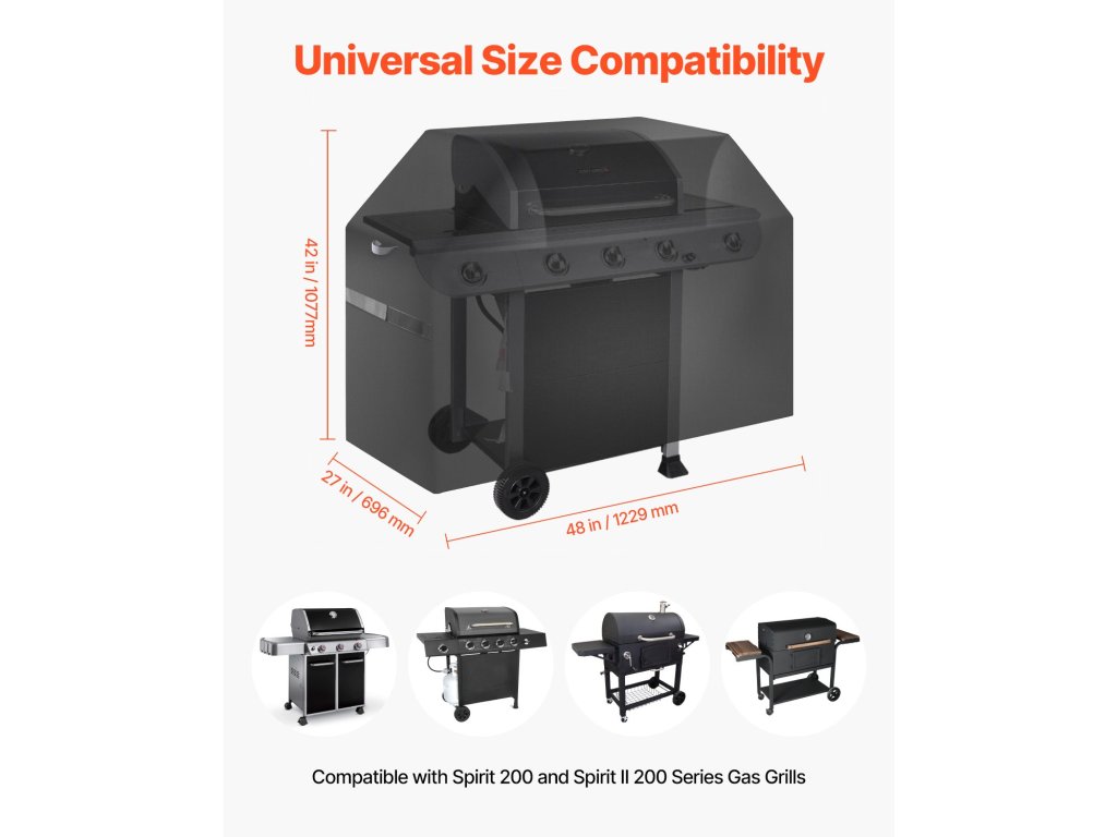 Univerzális kialakítás, kompatibilis a legtöbb grillsütővel. Egyszerűen mérje meg a grill szélességét, magasságát és mélységét, és válassza ki a megfelelő méretet. Ez a kültéri grillhuzat tökéletesen illeszkedik a grillezőberendezéséhez.
