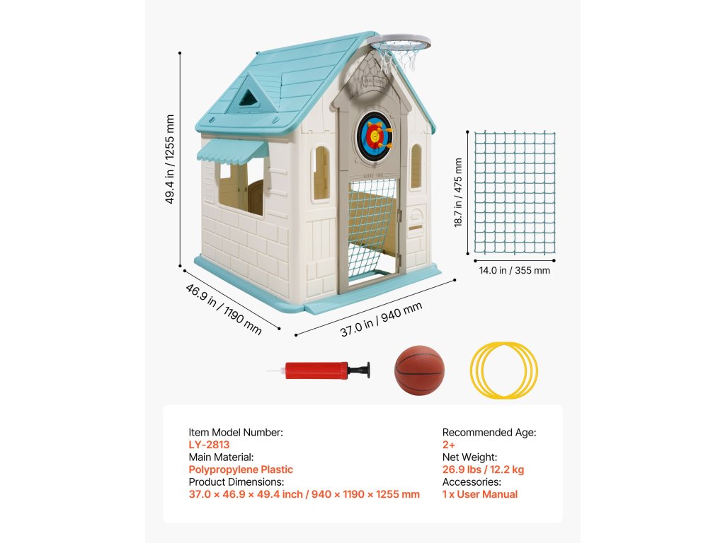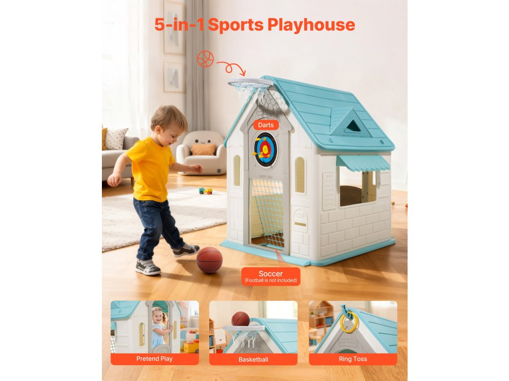 5 az 1-ben gyerek kerti játszóház csúszdával, kosárlabdával, darts-szal