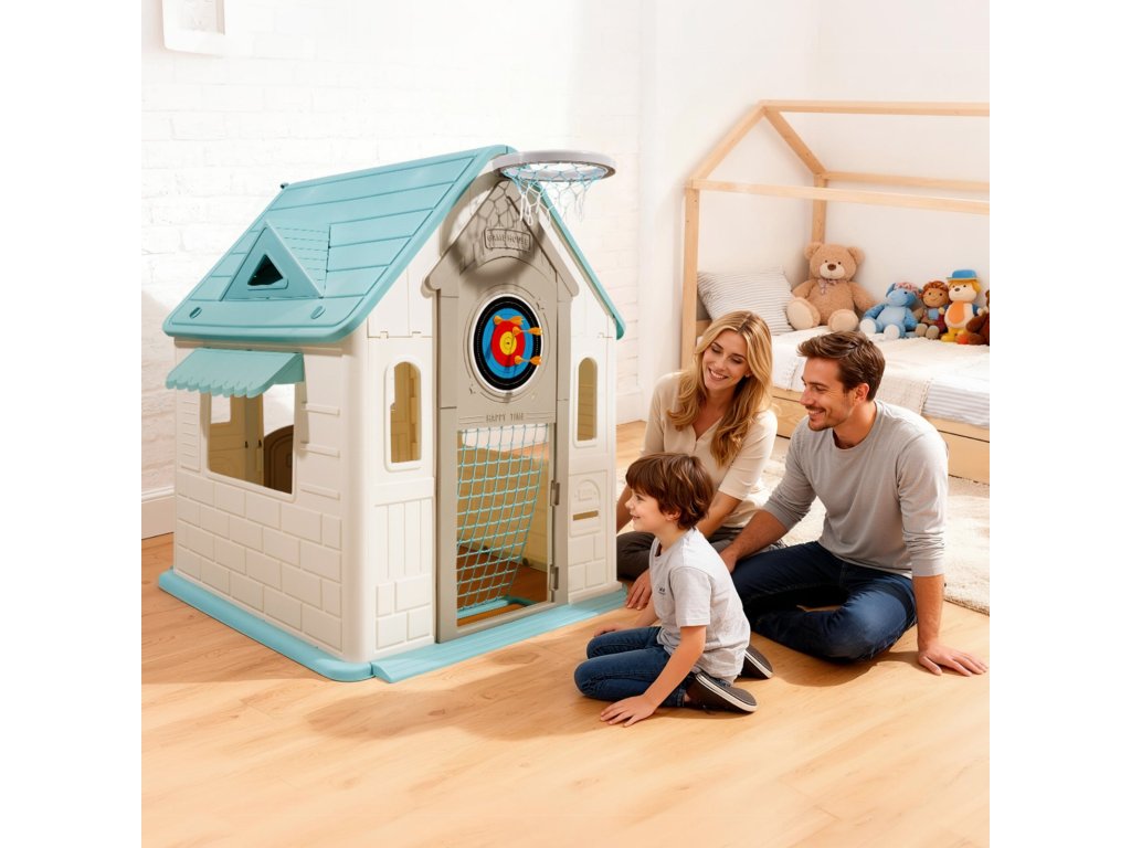Az 5 az 1-ben beltéri játszóházunk tevékenységekkel 2 éves kortól használható, és kosárlabdát, focilabdát és mágneses dartsot tartalmaz. Motiválja a gyermekeket, hogy aktívak maradjanak, fejlesszék koordinációjukat és élvezzék a játékos kihívásokat. A strapabíró PP műanyag szerkezet garantálja a hosszan tartó beltéri izgalmakat.