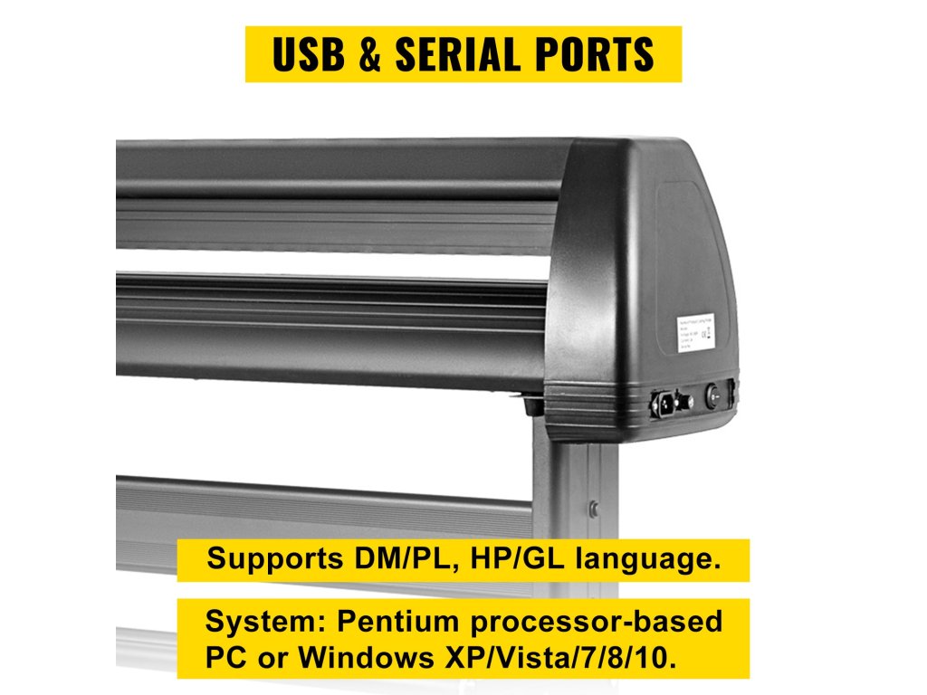 Nagyfokú kompatibilitás: a vinyl nyomtató COMPIM és USB interfésszel kapható a könnyebb csatlakoztatás érdekében, támogatja a DM/PL és HP/GL nyelvet, Pentium vagy Windows processzoros számítógépet. Elfogadja a D-típusú alaplapot és a nagy sebességű gyorsítótárat. a 2 dupla rugós nyomógörgő és az alumínium racsnis rúd biztosítja, hogy a papírtovábbítás ne térjen el nagy mértékben.