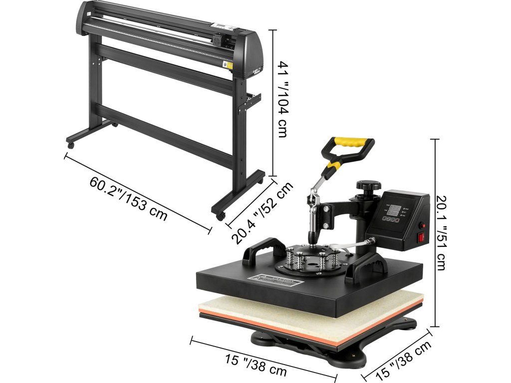 - Modell: 15" x 15" hőprés és 53" vinil vágógép