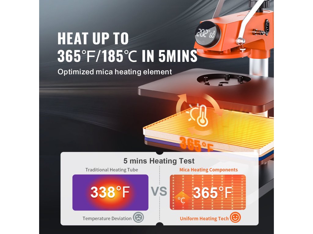 A fűtőszál sűrűbb, mint a hagyományos fűtőcső, gyors és egyenletes hőmérséklet-emelkedés jellemzi. Szemet gyönyörködtető ragyogó szublimációs transzfer eredmény sötét foltok nélkül.
