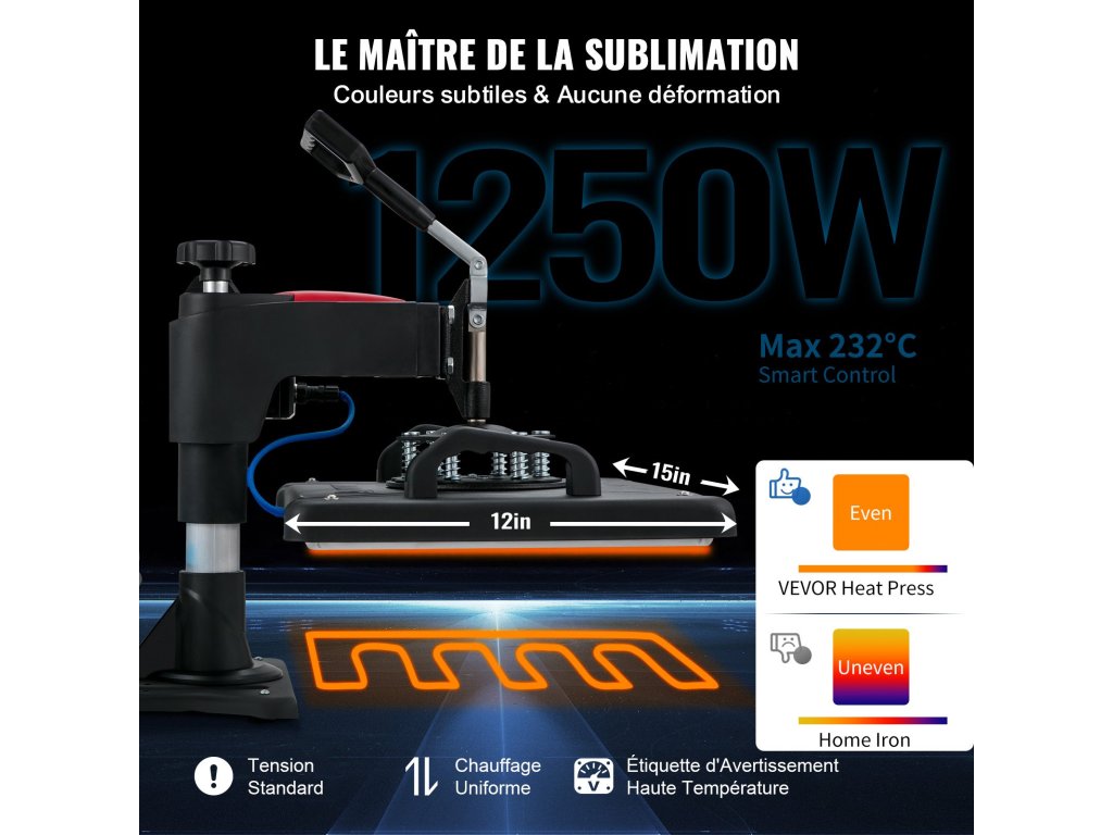 Elege van abból, hogy a színei elhalványulnak a transzferek során? Ezzel az újonnan bevezetett 5 az 1-ben hőpréssel bármikor gyönyörűen átviheti az összes művét! Az összes olyan alapvető funkcióval büszkélkedhet, amelyre már régóta várt. Gyors fűtési sebesség, intelligens vezérlőchip, pergésálló felület, magas hőmérsékletre figyelmeztető címke és hőszigetelő párnák......mindezek a jellemzők együttesen mutatják meg a transzferek terén nyújtott kiváló teljesítményünket. Az összes kreatív ötletet, amivel eddig előállt, megvalósíthatja ezen a VEVOR gépen, és a következő szintre emelheti hobbiját és vállalkozását!