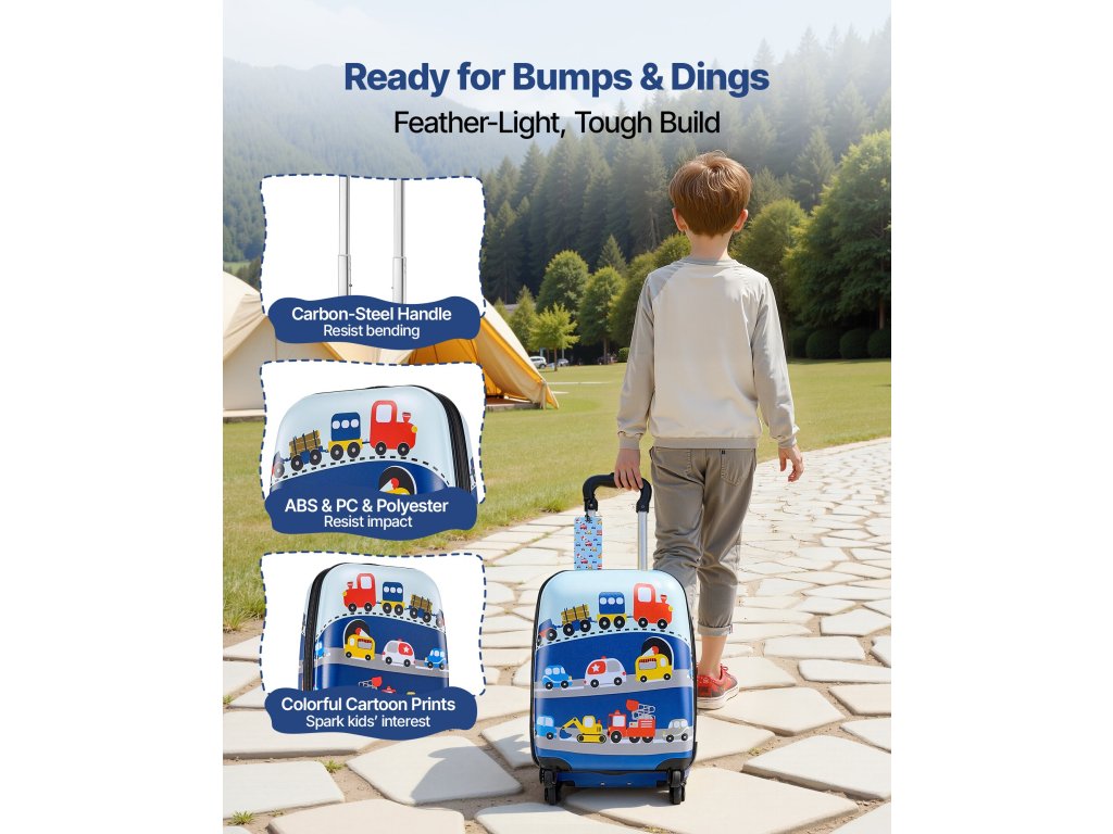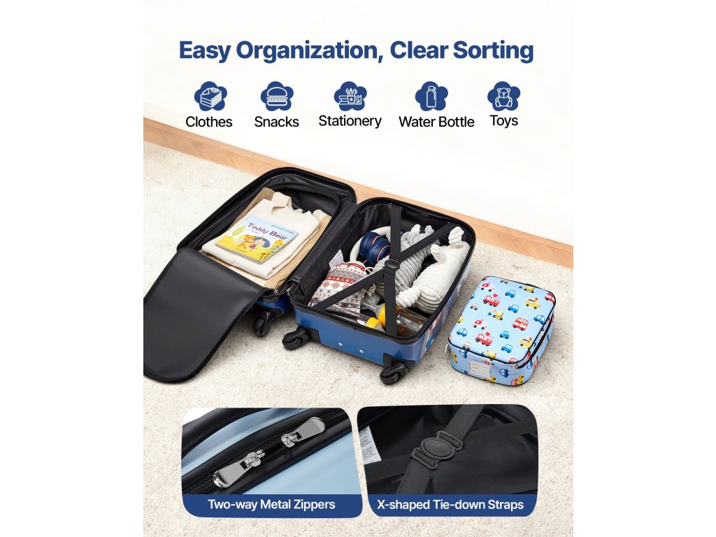 Ez az 5 darabos gyermek poggyászkészlet megfelel a kézipoggyászra vonatkozó követelményeknek, és megkönnyíti az utazást. A tartós felület, az átlátható rekeszek, az állítható fogantyú és a sima forgó kerekek segítenek a gyerekeknek hatékonyan csomagolni és magabiztosan mozogni.