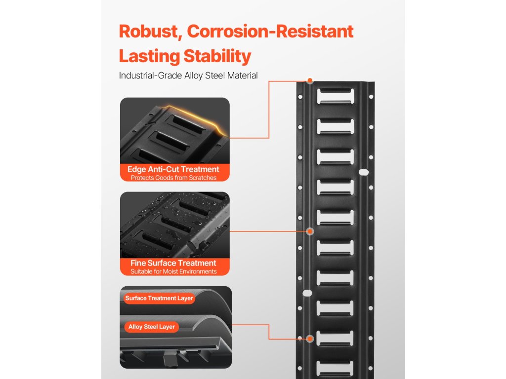 A kiváló minőségű rozsdamentes acélból készült és a tartósság érdekében kezelt E-track sínek készen állnak arra, hogy mindent kibírjanak. Nincs rozsda, nincs korrózió - csak megbízható teljesítmény és nyugalom. A vágásgátló élek megvédik áruit a karcolásoktól.