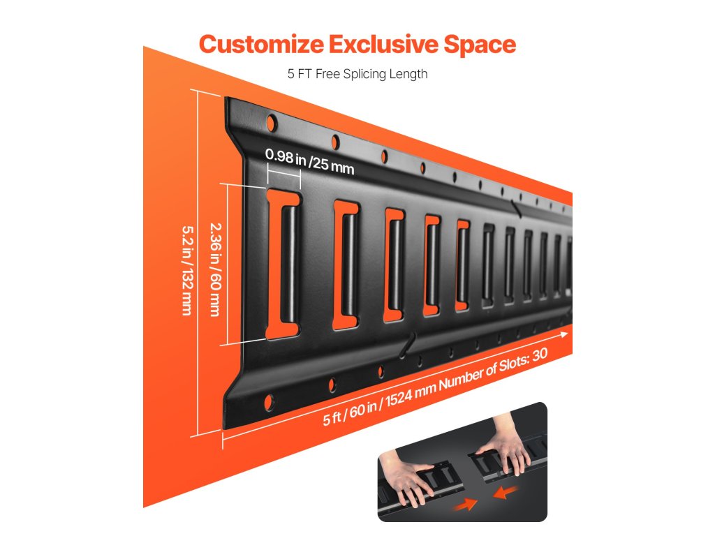 Rugalmasságra van szüksége a tárolási megoldásokban? E-sínes sínkészletünk segít Önnek! A kényelmes, 5 láb/1524 mm-es állítható hosszúsággal és a gyors testreszabást lehetővé tevő 30 nyílással pillanatok alatt létrehozhatja az igényeinek megfelelő tökéletes beállítást.
