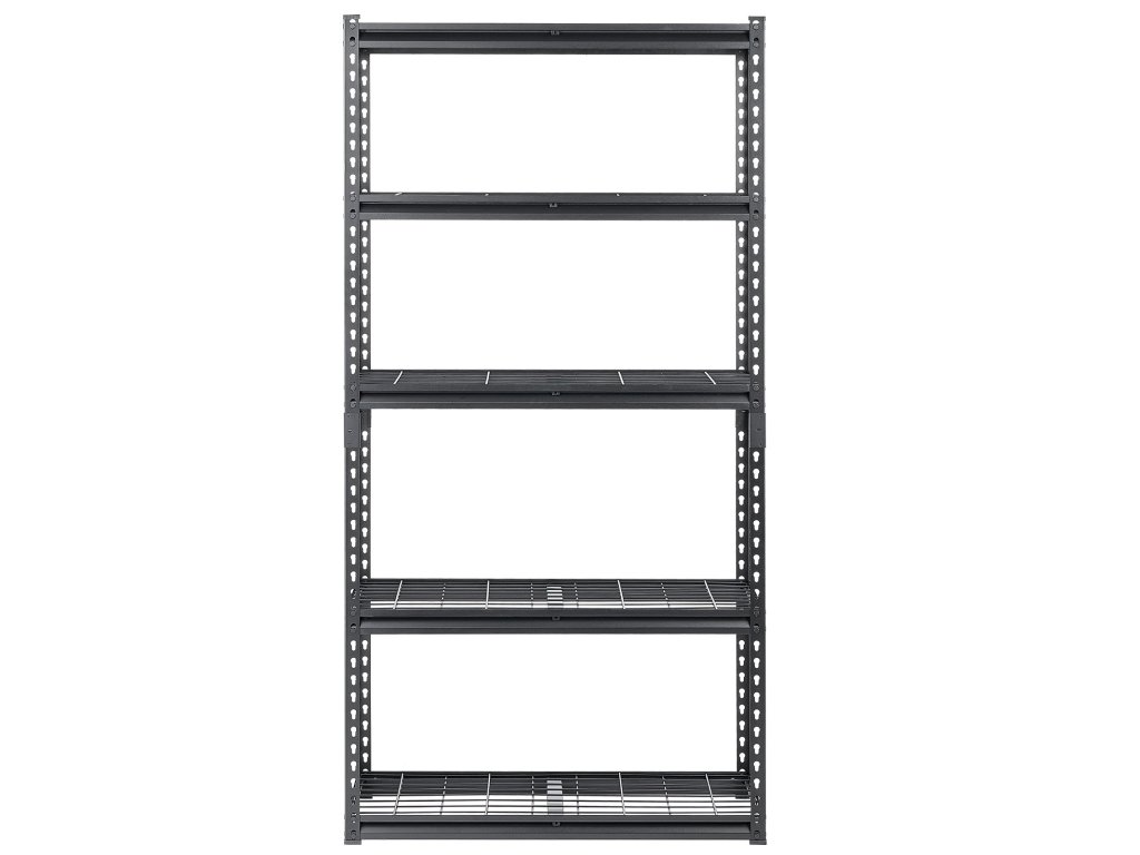 A garázspolcok kialakítása a rögzítő rúddal lehetővé teszi a könnyű magasságbeállítást, a különböző méretű tárgyak elhelyezését és a hely maximális kihasználását.
