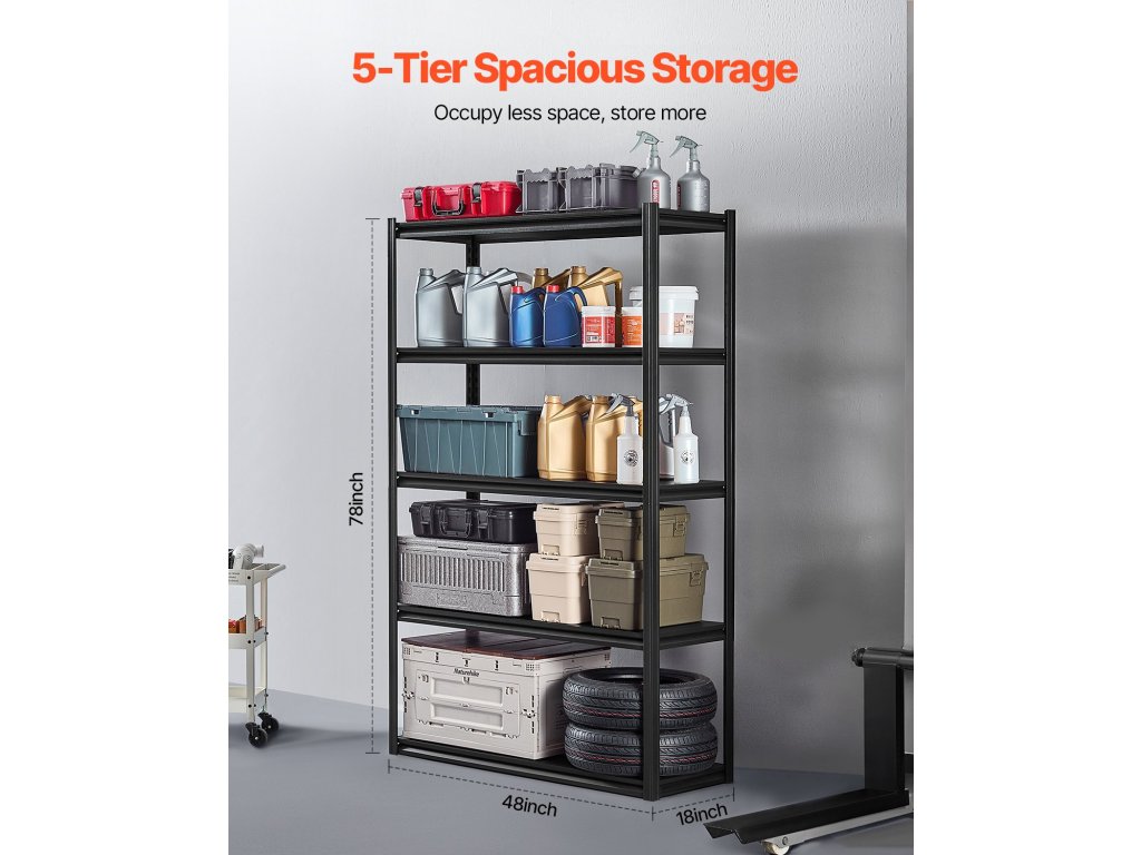5 polcos fém állvány, teherbírás 1350 kg, állítható méretek, 45×122×192 cm