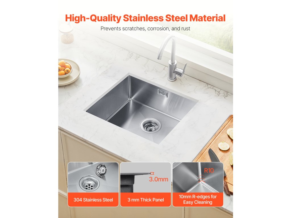 A beépíthető mosogatót könnyű felszerelni, nem igényel nagyobb módosításokat a konyhaszekrényeken vagy a munkalapokon. Az extra vastag, 3 mm-es 304 rozsdamentes acélból készült perem lehetővé teszi a biztonságos beépítést; a vastag mosogatótest pedig biztosítja a tartósságot.