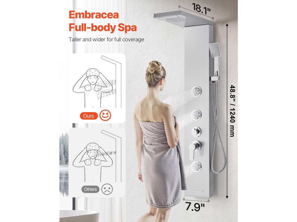 Testre szabható multifunkciós zuhanypanelek toronyzuhanyzó rendszerrel, hogy megfeleljen a hangulatának és igényeinek. A megnövelt kialakítás természetesebb vízborítást biztosít zuhanyzás közben.