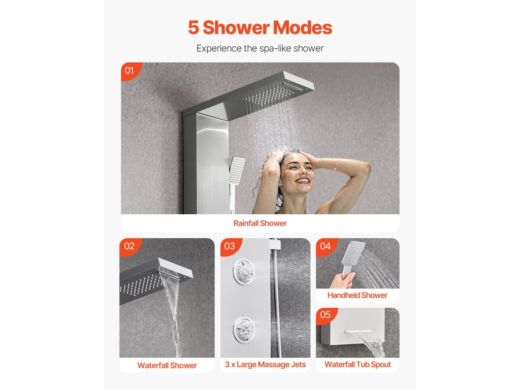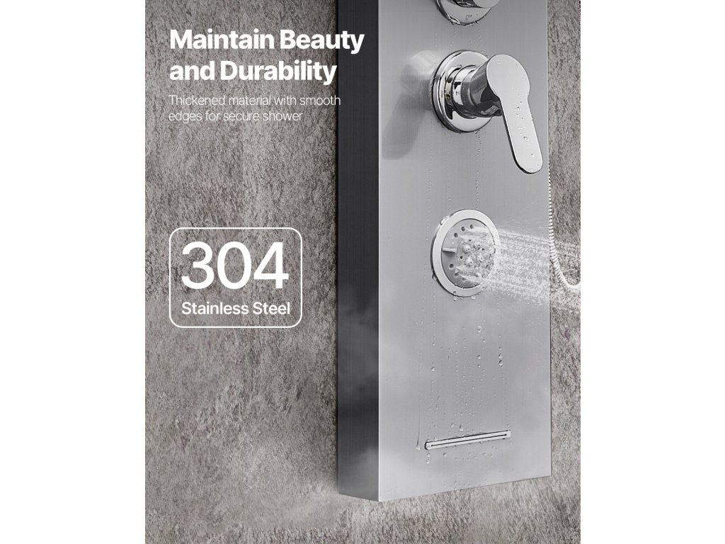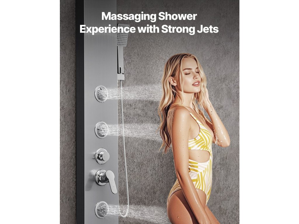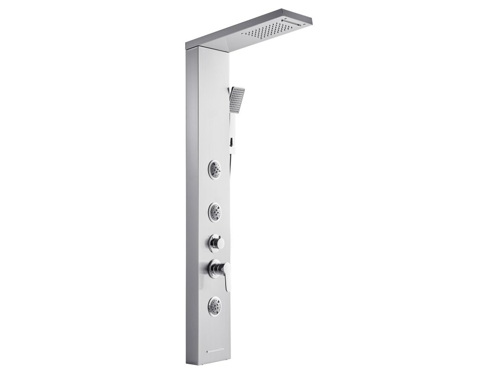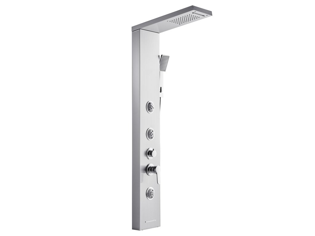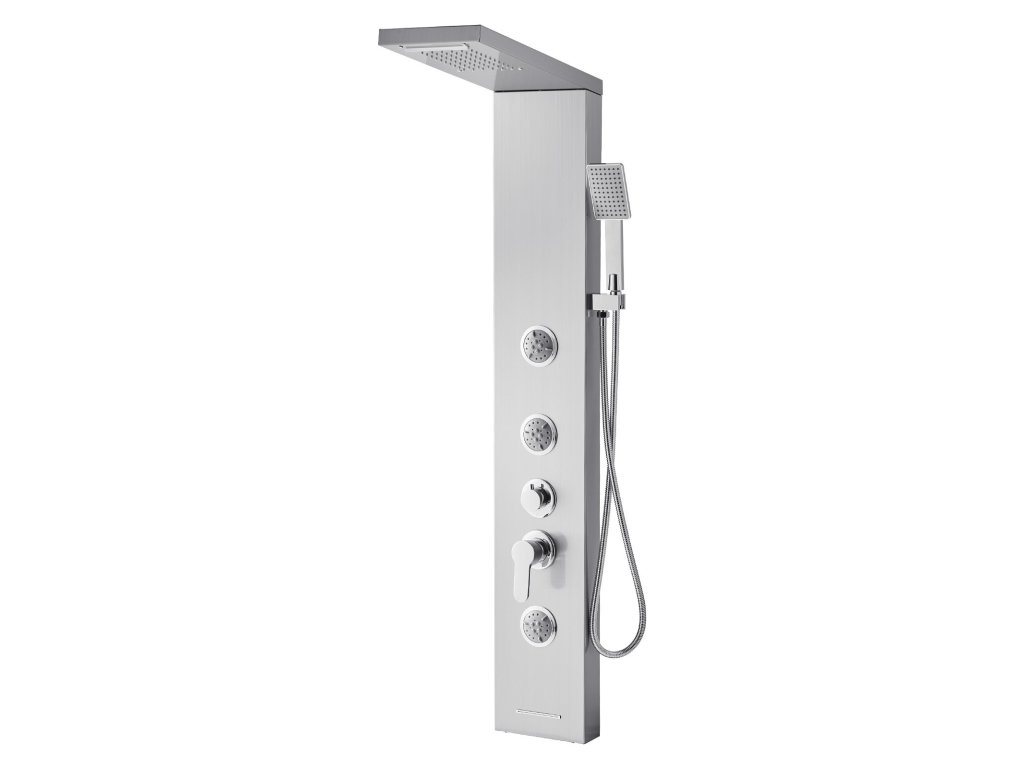 53-as zuhanypanel szálcsiszolt rozsdamentes acélból, eső/vízesés, 5 funkció, 3 fúvóka