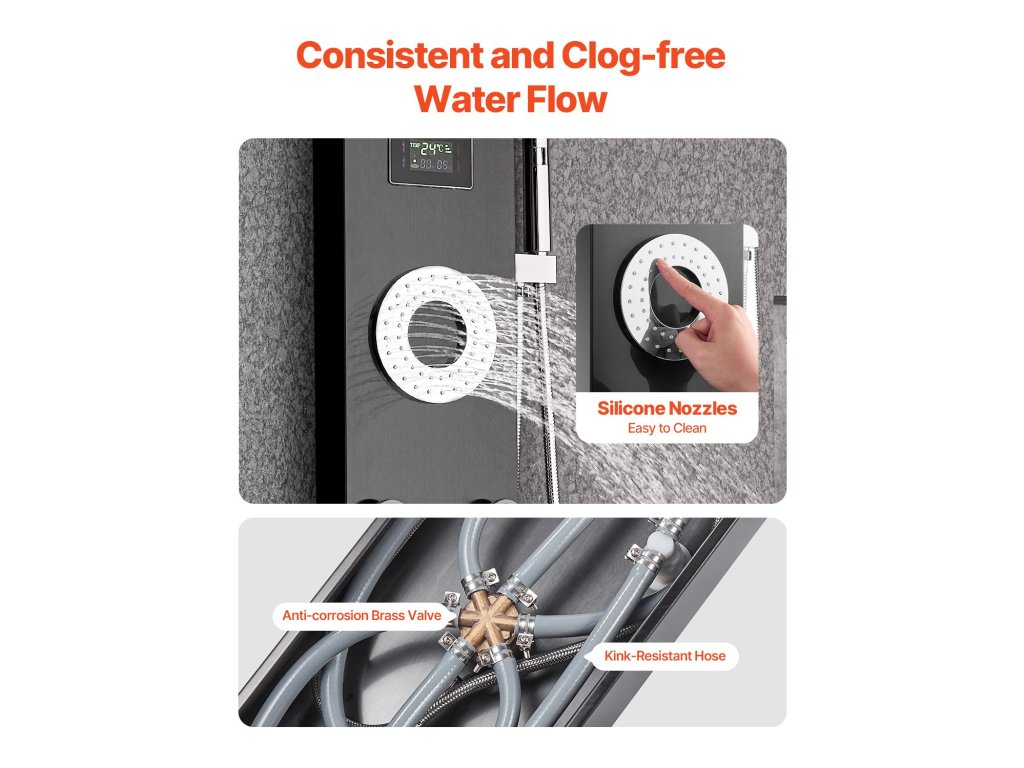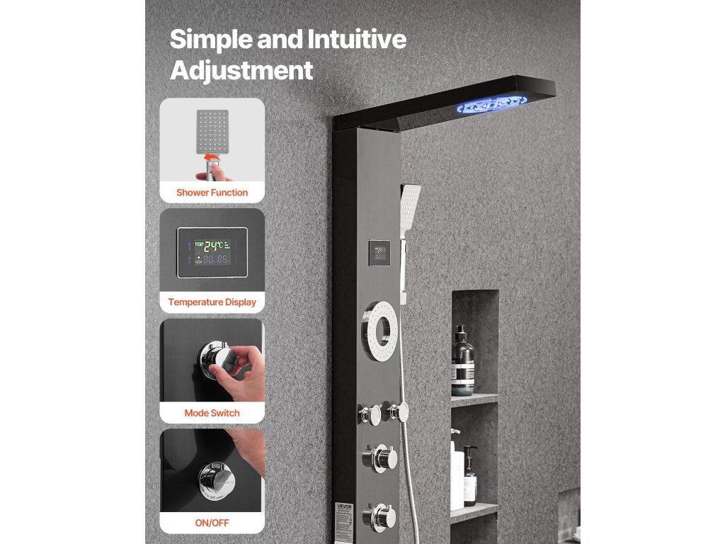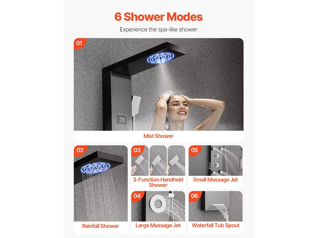 Ez a toronyzuhanypanel többfunkciós és az Ön hangulatához és igényeihez igazítható. A megnövelt kialakítás természetesebb lefedettséget biztosít a vízsugár által zuhanyzás közben.