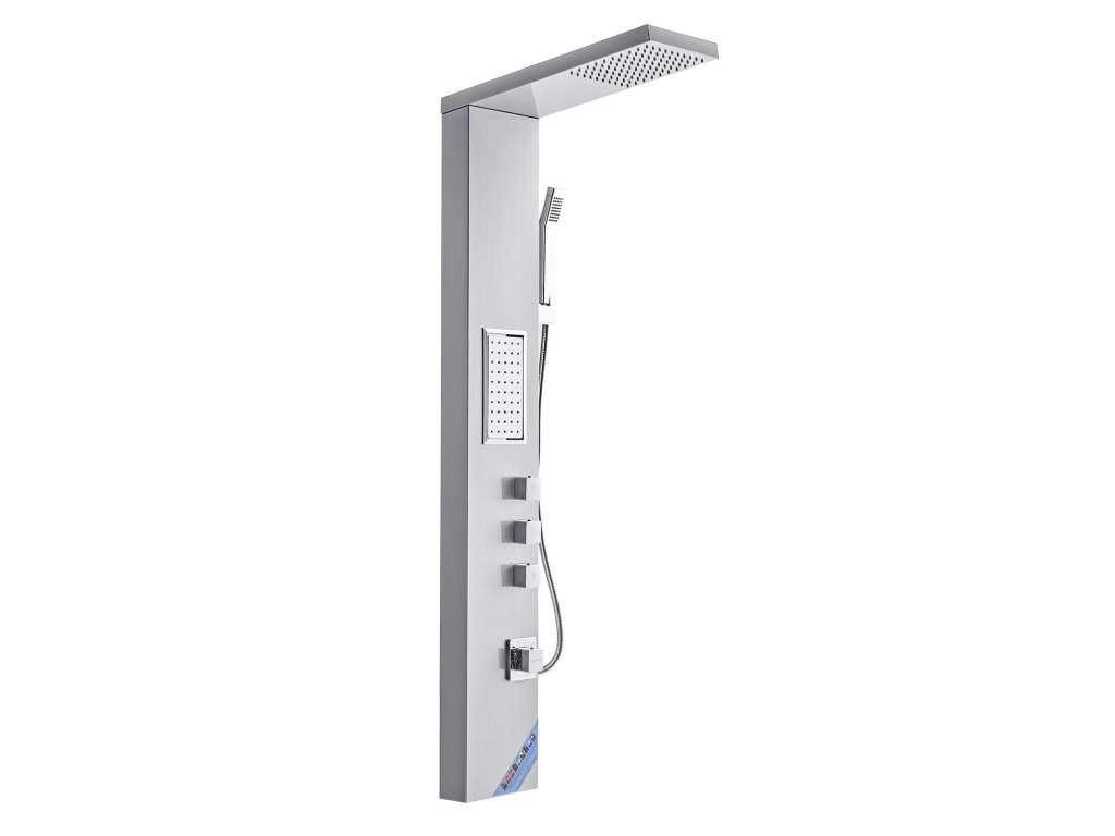 53-as zuhanypanel szálcsiszolt rozsdamentes acélból, esőztetővel, 3 funkciós kézi zuhany