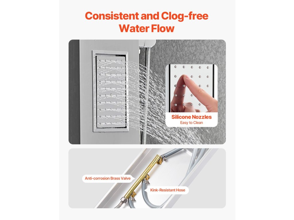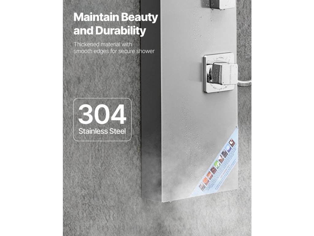 Ez a toronyzuhanypanel többfunkciós és az Ön hangulatához és igényeihez igazítható. A megnövelt kialakítás természetesebb lefedettséget biztosít a vízsugár által zuhanyzás közben.